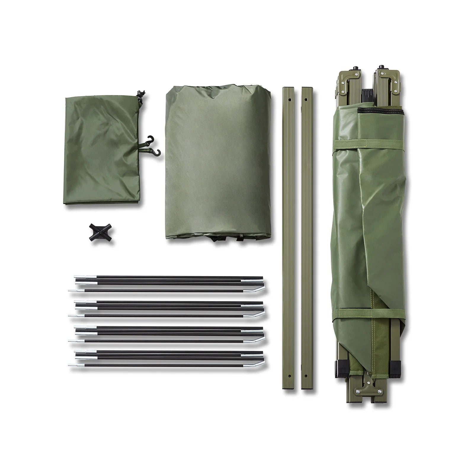 Hurtig og nem opstilling giver dig mere tid til at nyde din campingtur. Både teltet og hængekøjen er foldbare og fylder minimalt, når de ikke er i brug. Alt kan pakkes i den medfølgende bæretaske for nem transport.