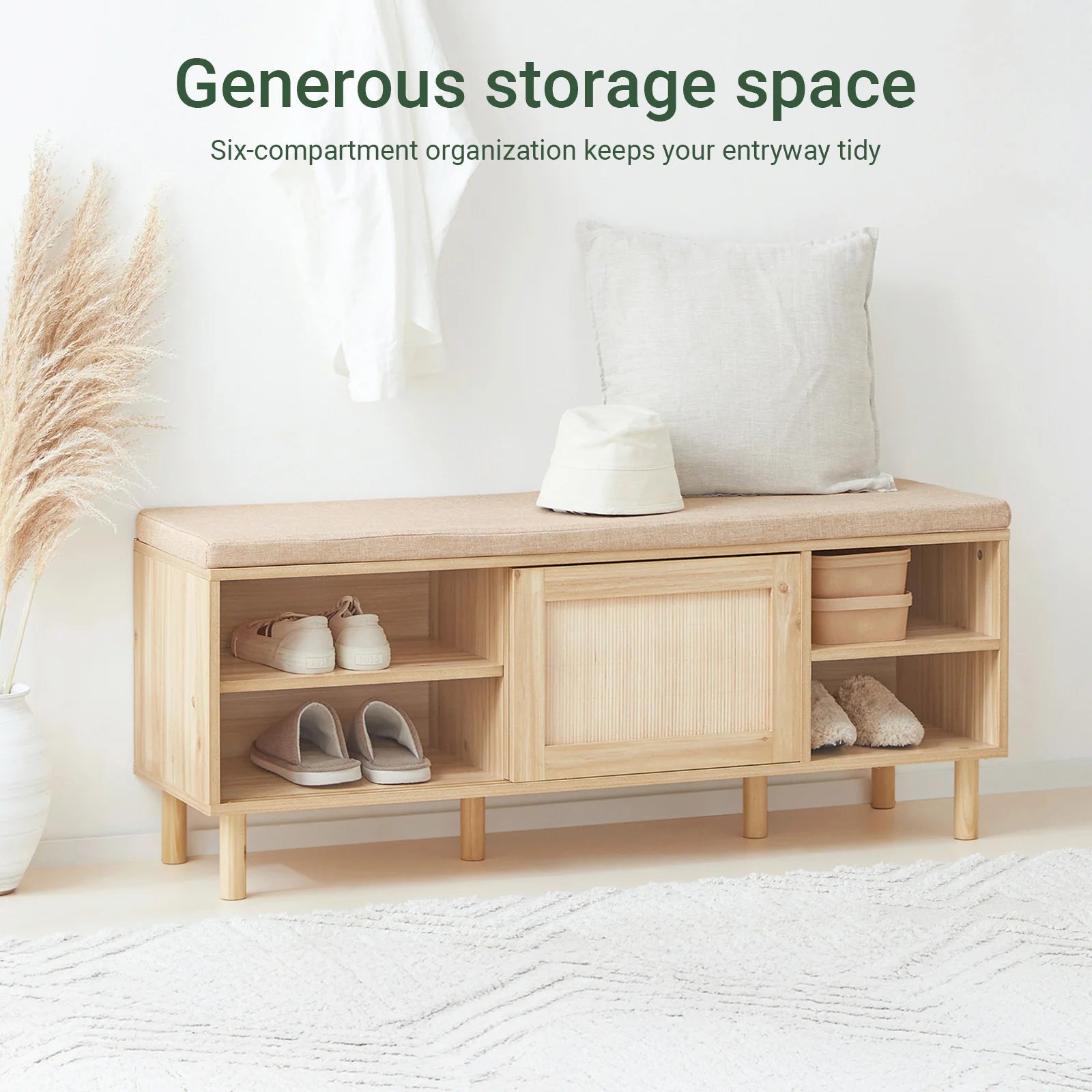 Denne rummelige skobænk med siddeplads er den perfekte løsning til entréen, hvor funktionalitet og design går hånd i hånd. Med plads til både sko og accessories får du et ryddeligt hjem – uden at gå på kompromis med komforten.