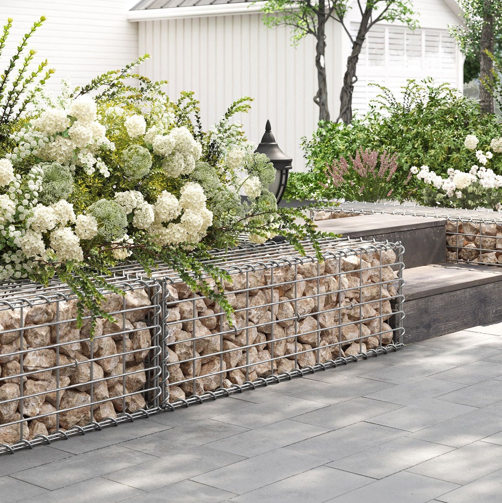 Denne gabionkurv er fremstillet af 4 mm galvaniseret stål, der gør den utrolig solid og holdbar. Den er rust- og korrosionsbestandig og kan pryde din have sæson efter sæson.