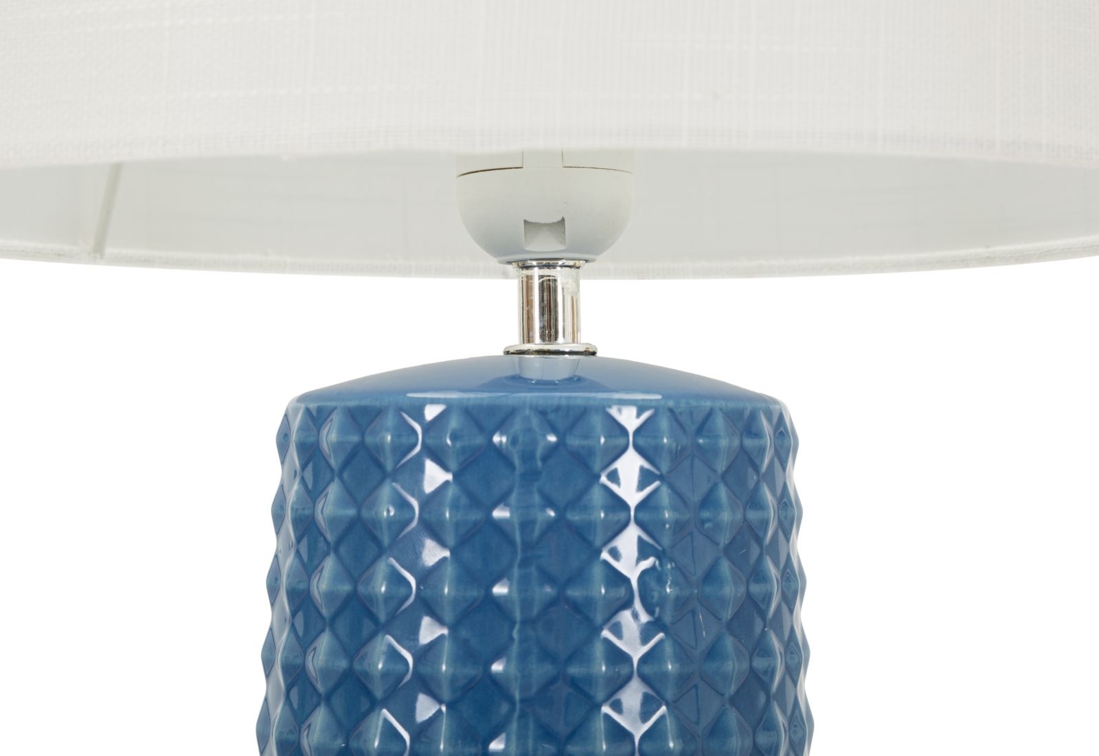 Tilfør farve og elegance til dit hjem med GLISS TABLE LAMP i en smuk, blank blå nuance. Den keramiske base har en dekorativ geometrisk reliefstruktur, som giver lampen et moderne og eksklusivt udtryk.