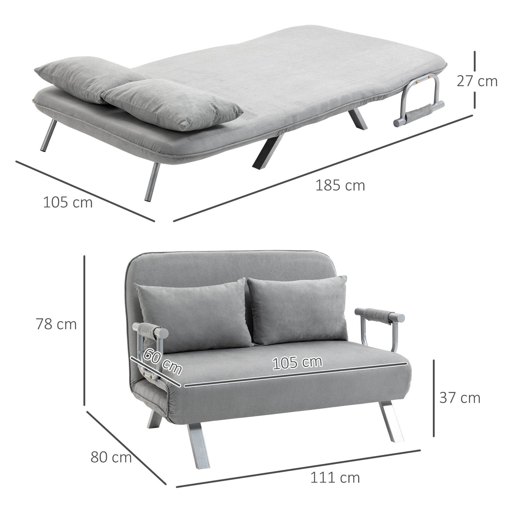 Sovesofa, dobbeltsofa, gæsteseng, inklusive 2 puder, grå