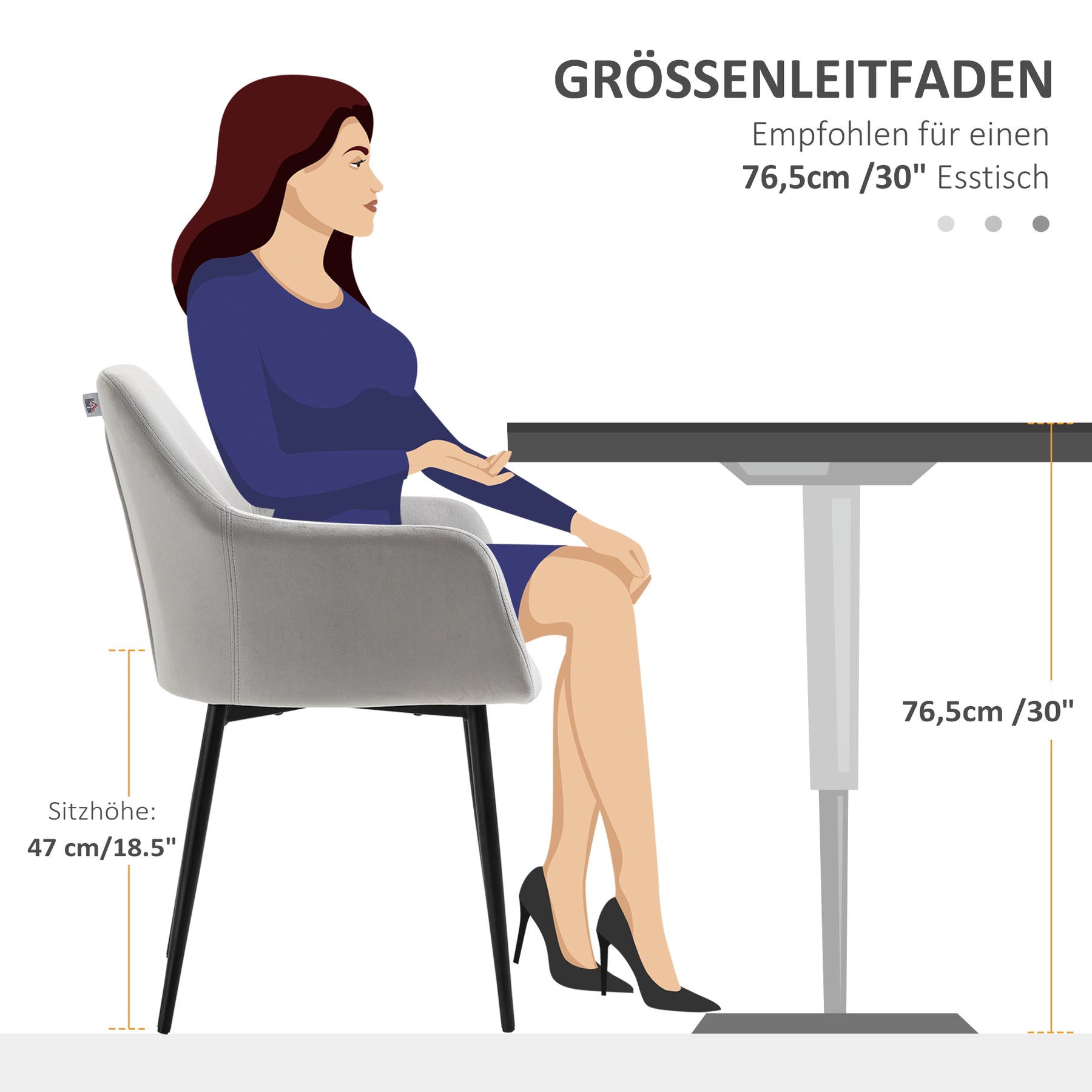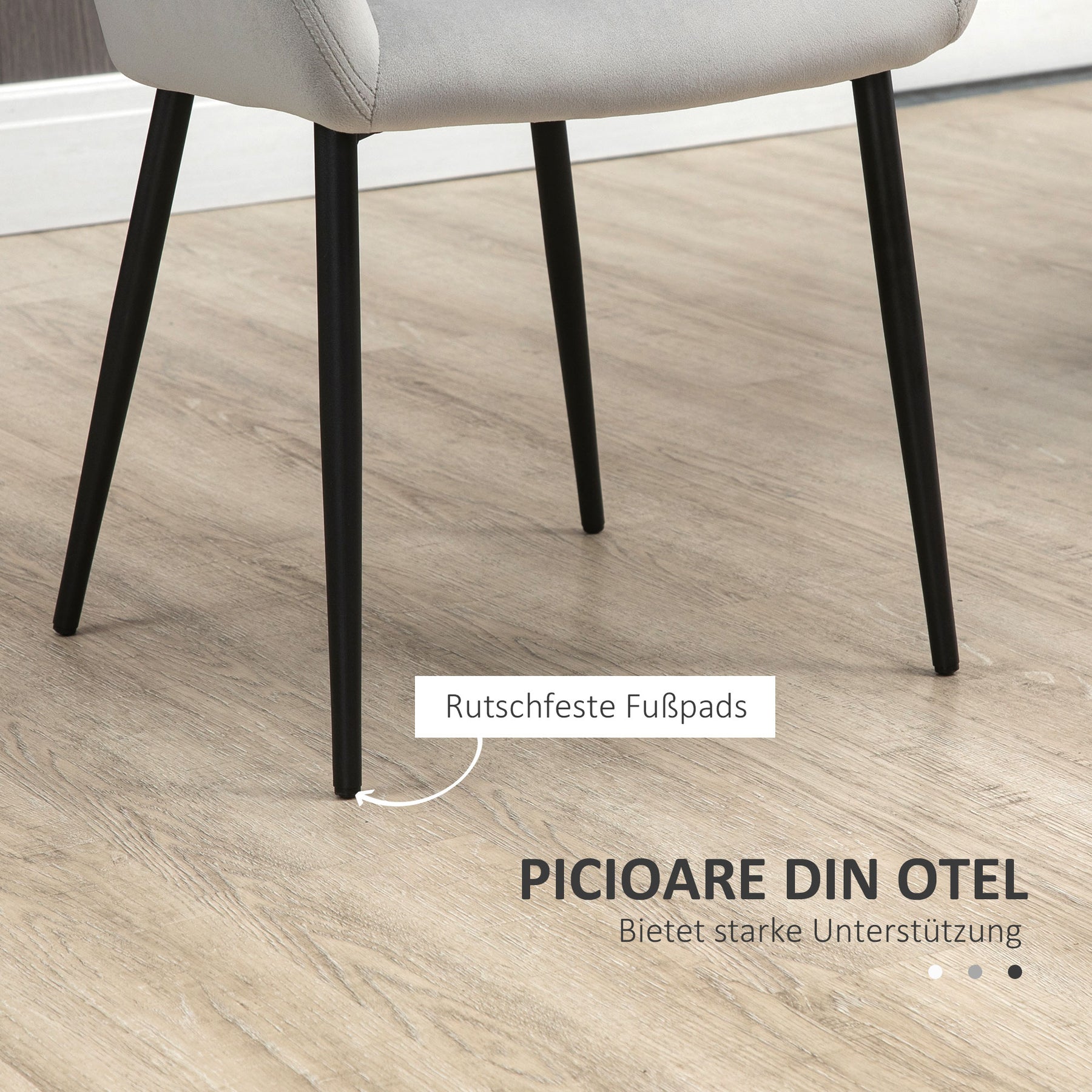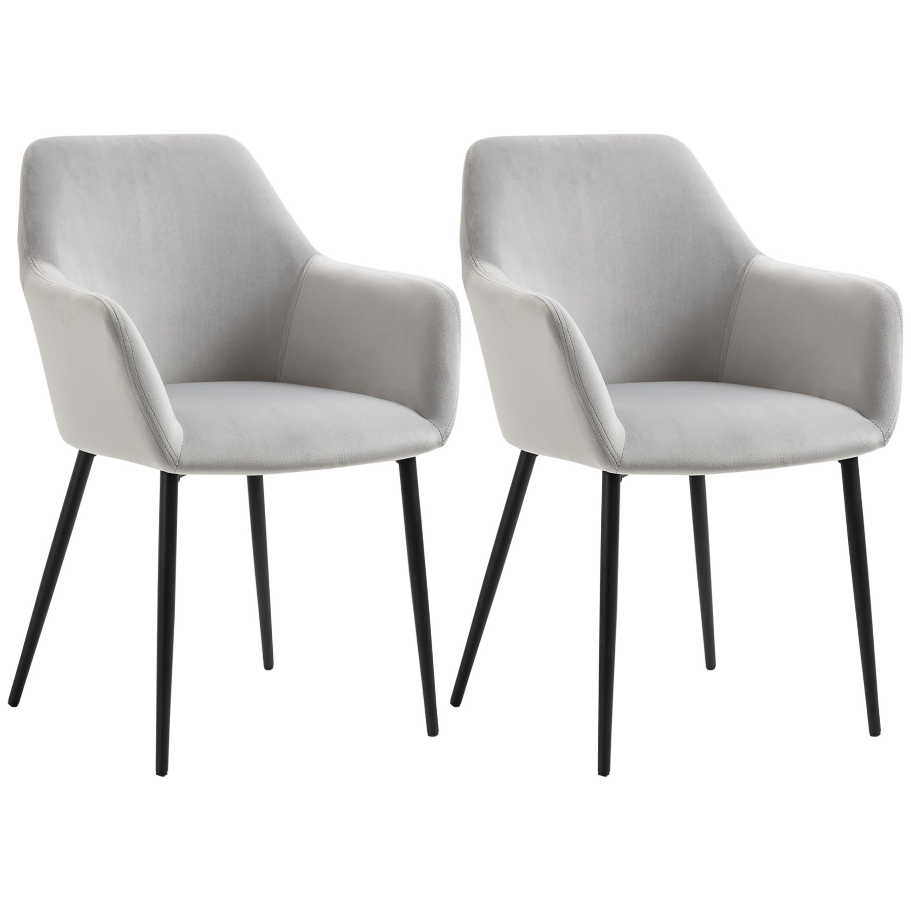Fremhæv dit køkkenbord eller underhold gæster med dette sæt af to spisebordsstole. Det klassiske og enkle look passer ind i mange elegante omgivelser. Stolene er komfortable og smukke med en buet ryg, generøs polstring, et bredt sæde og fire lange, vinklede stålben for stabilitet. Det fløjlsbløde stof er blødt og glat.