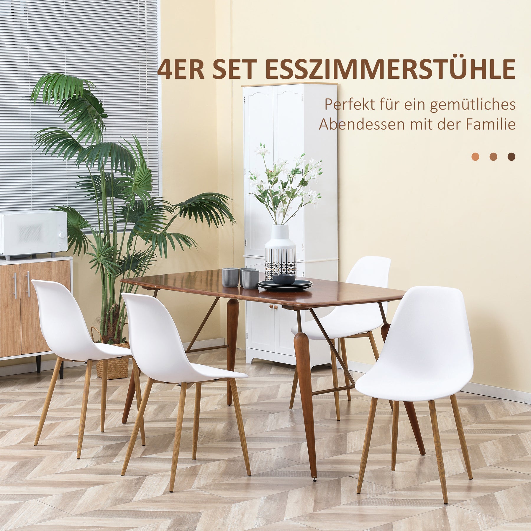 Spisestolesæt med 4, metalben i trælook, skridsikre fødder, op til 120 kg, hvid/trædekor