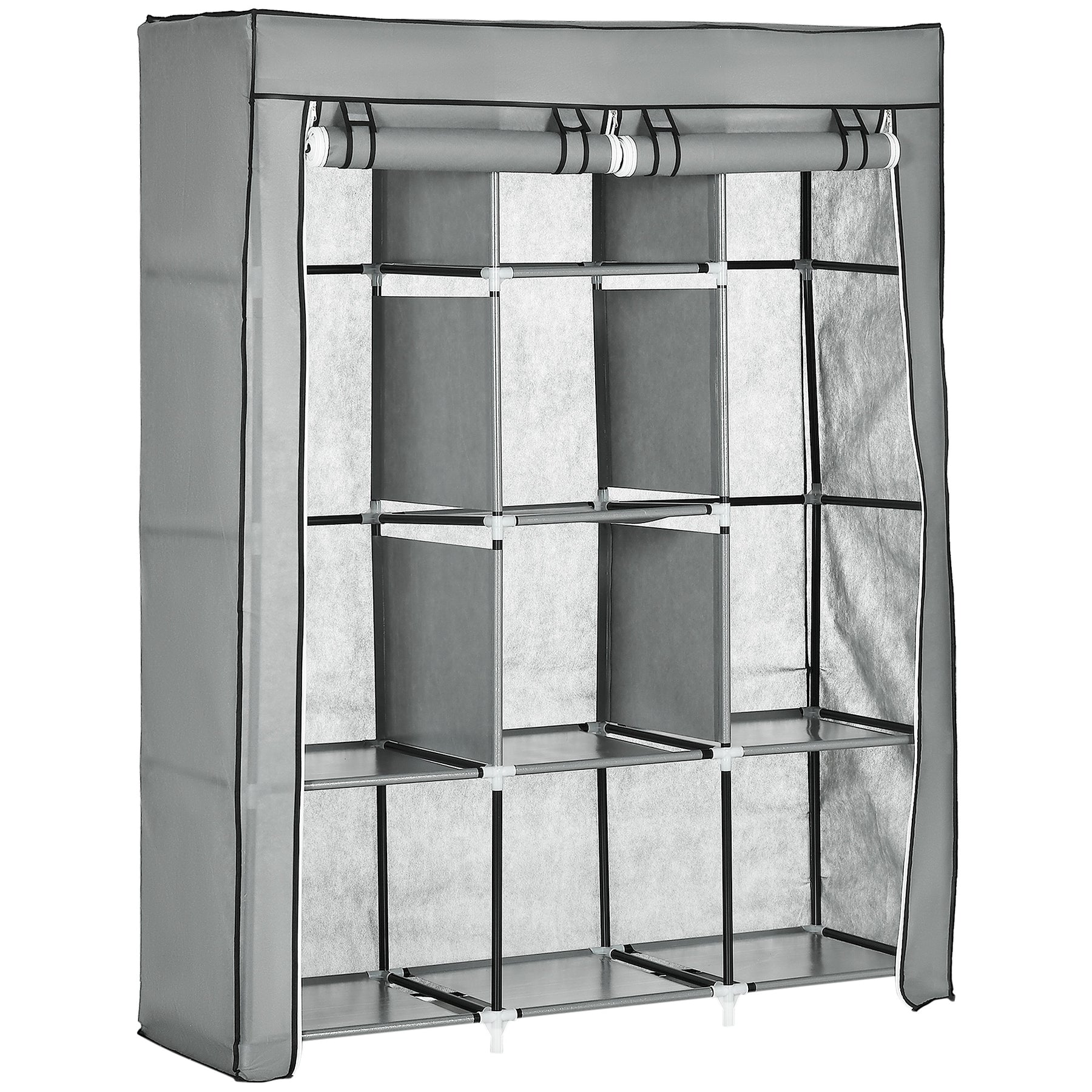 Skab orden i dit hjem med denne alsidige stofgarderobe, der passer perfekt i ethvert rum, hvor ekstra opbevaringsplads er nødvendig. Med to bøjleskinner og otte hylder kan du nemt organisere tøj, håndklæder, sengetøj eller tasker. Det ikke-vævede stofbetræk beskytter dine ejendele mod støv og er den ideelle løsning til effektiv opbevaring!