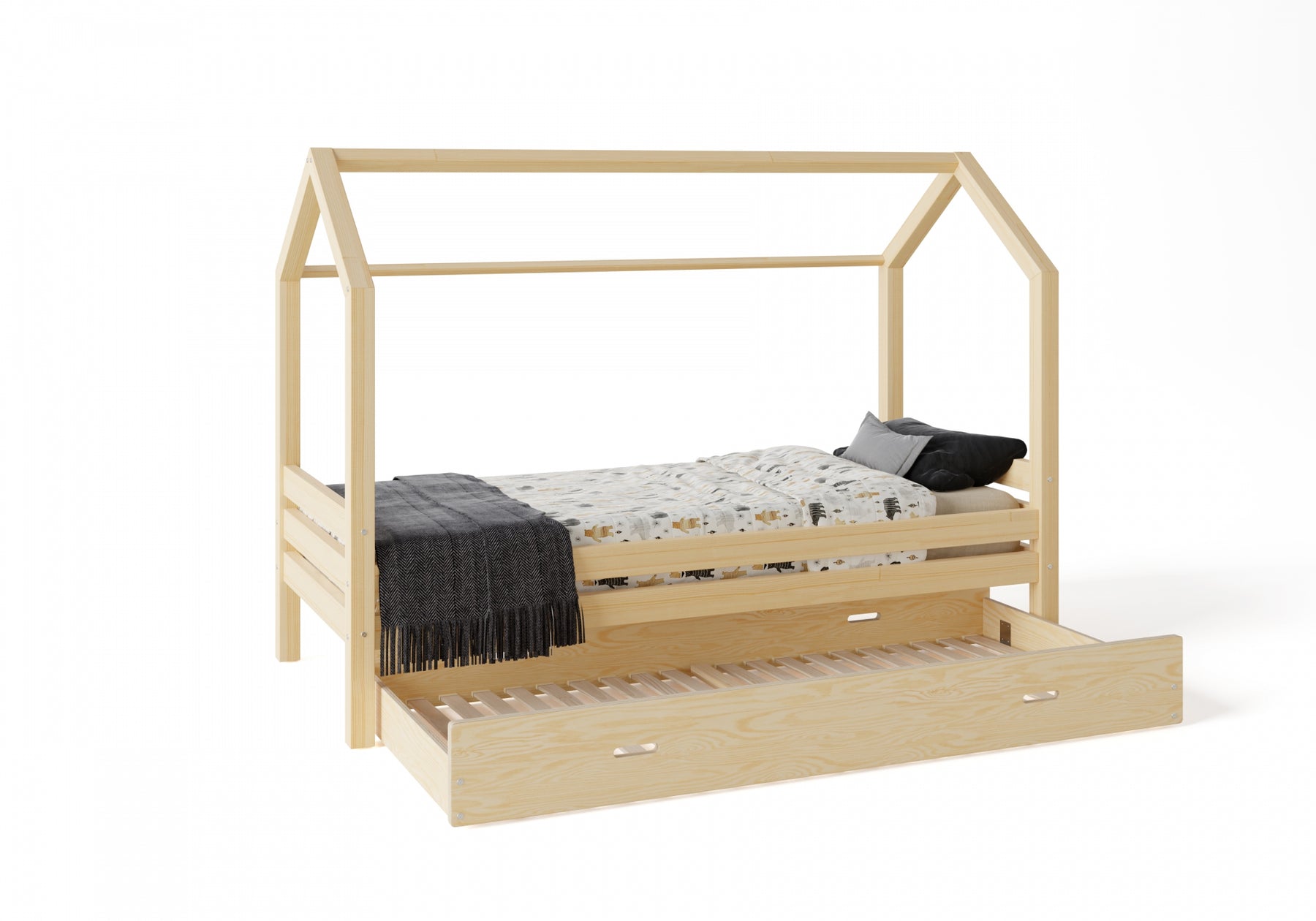 Produktet fås i forskellige størrelseskonfigurationer. Komfort og moderne design vil give TRANO P træbørnesengen en unik karakter til det rum, hvor du placerer den.