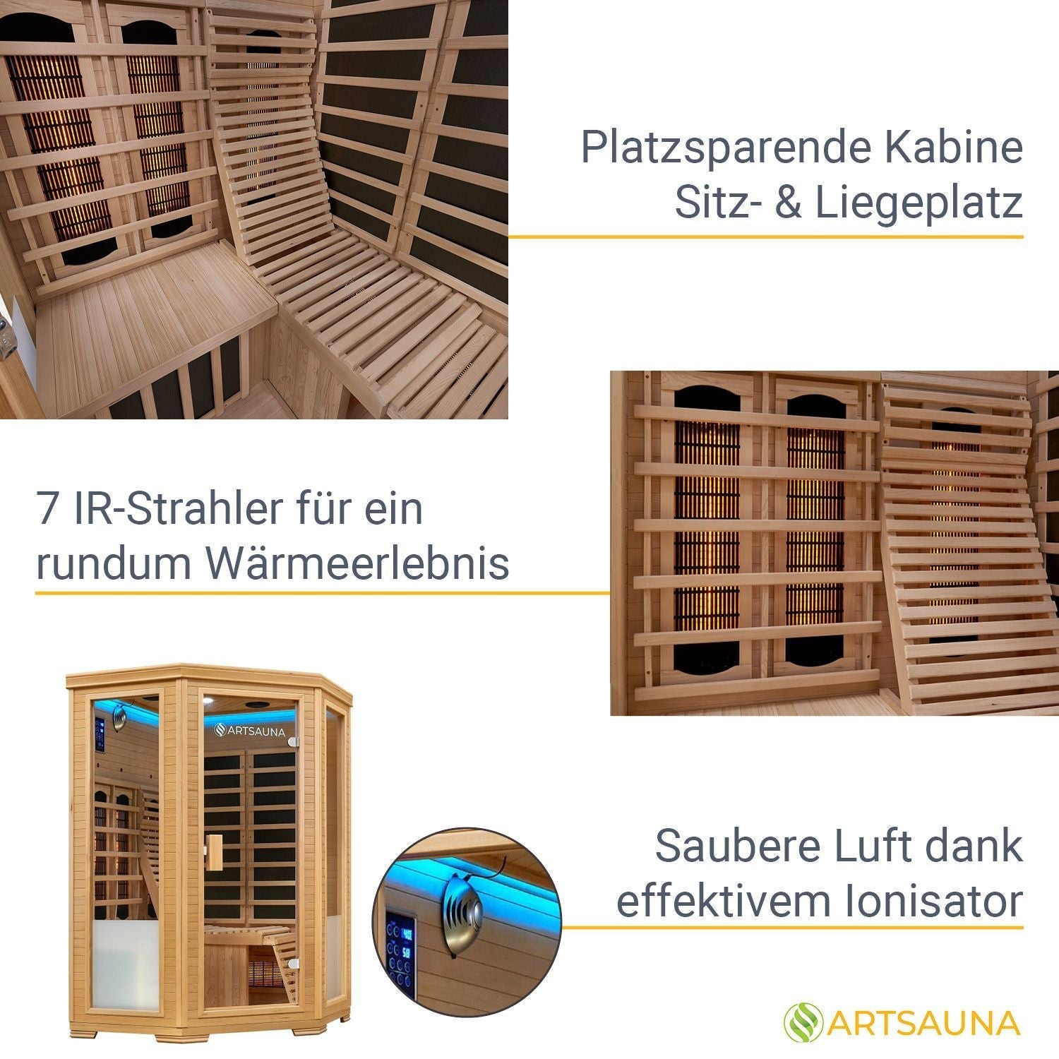 • Effektiv Rensning: Den indbyggede ionisator fungerer som en luftrenser, der med sine negativt ladede ioner renser luften i din infrarødkabine. Lugte, støv, kim og skimmelsvamp fjernes pålideligt fra luften.