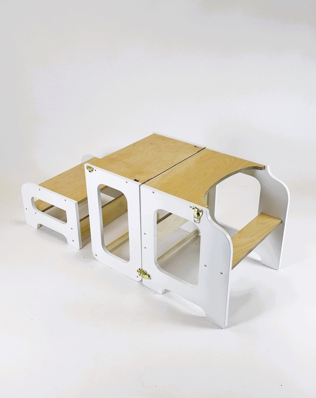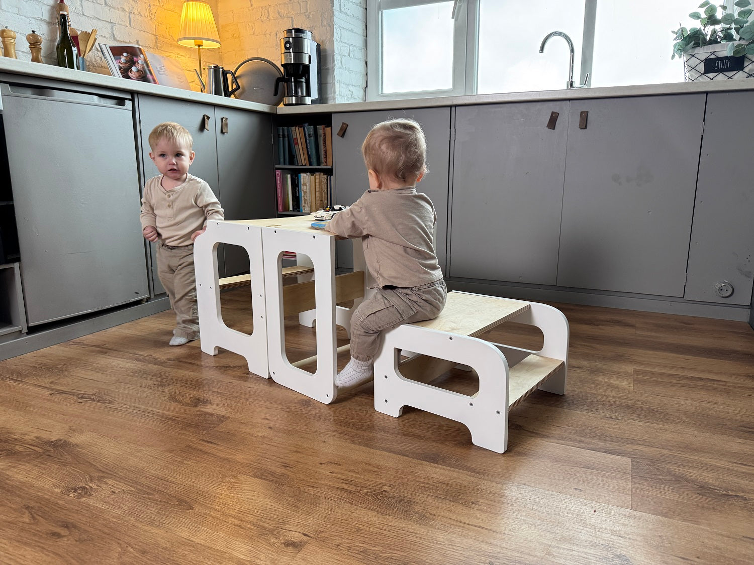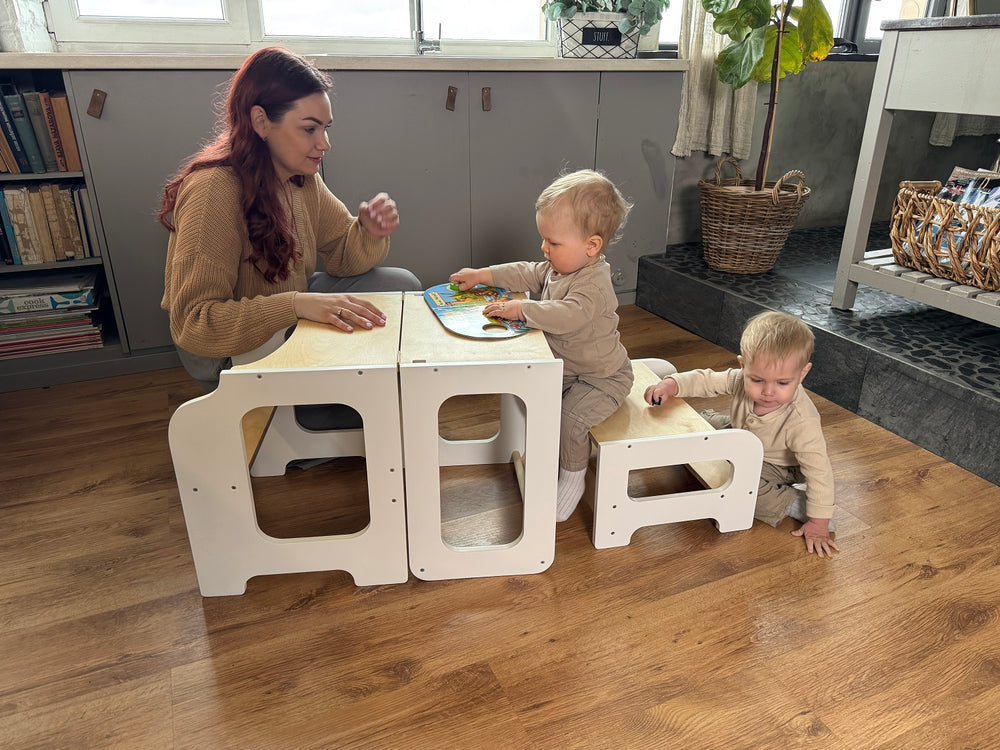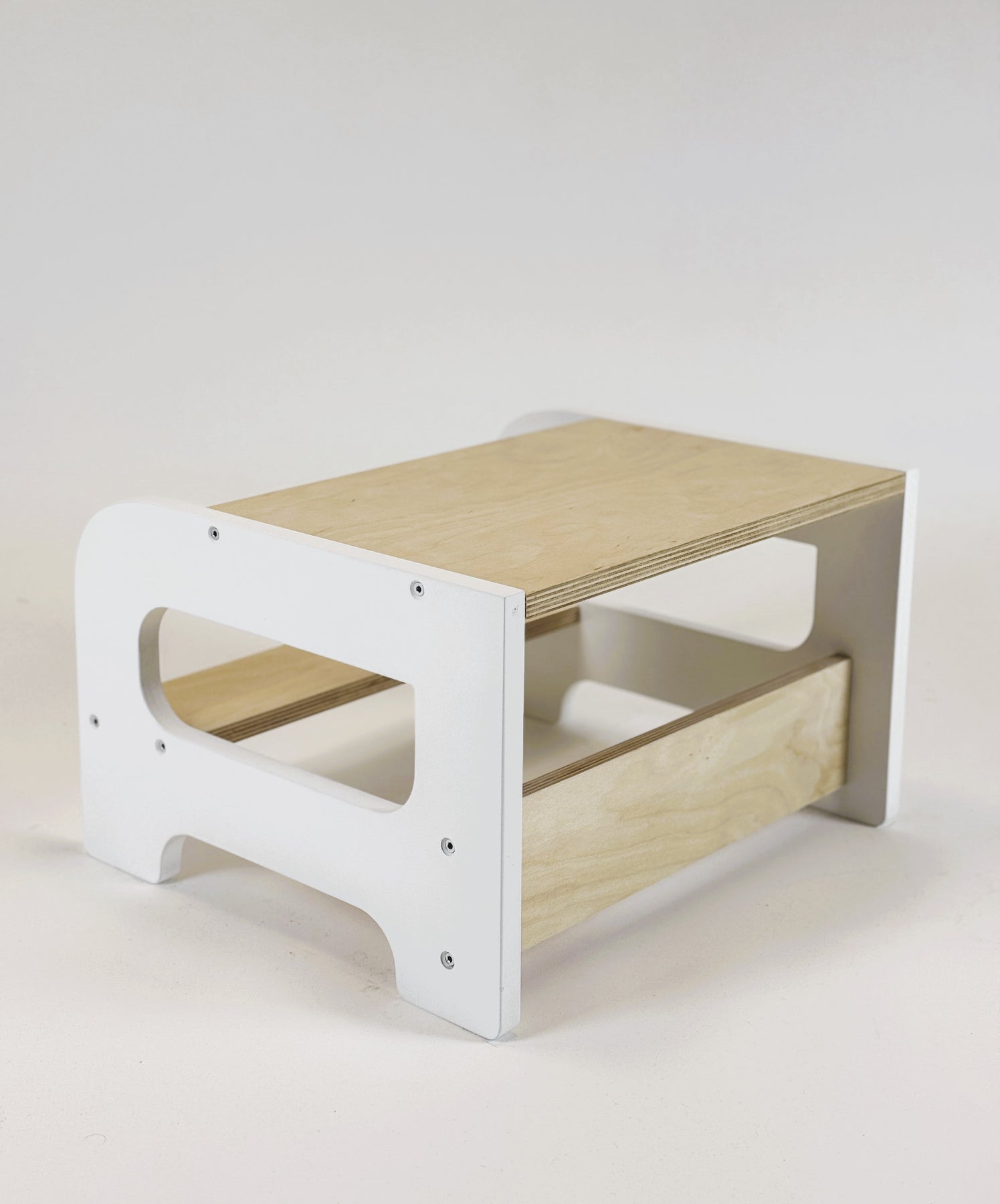 Og det bedste? Den er stærk og stabil nok til også at bære en voksen. Du kan bruge den til at sidde ved siden af dit barn, eller som et lille trin, når du skal nå noget på en høj hylde – ingen vaklen, ingen bekymringer.