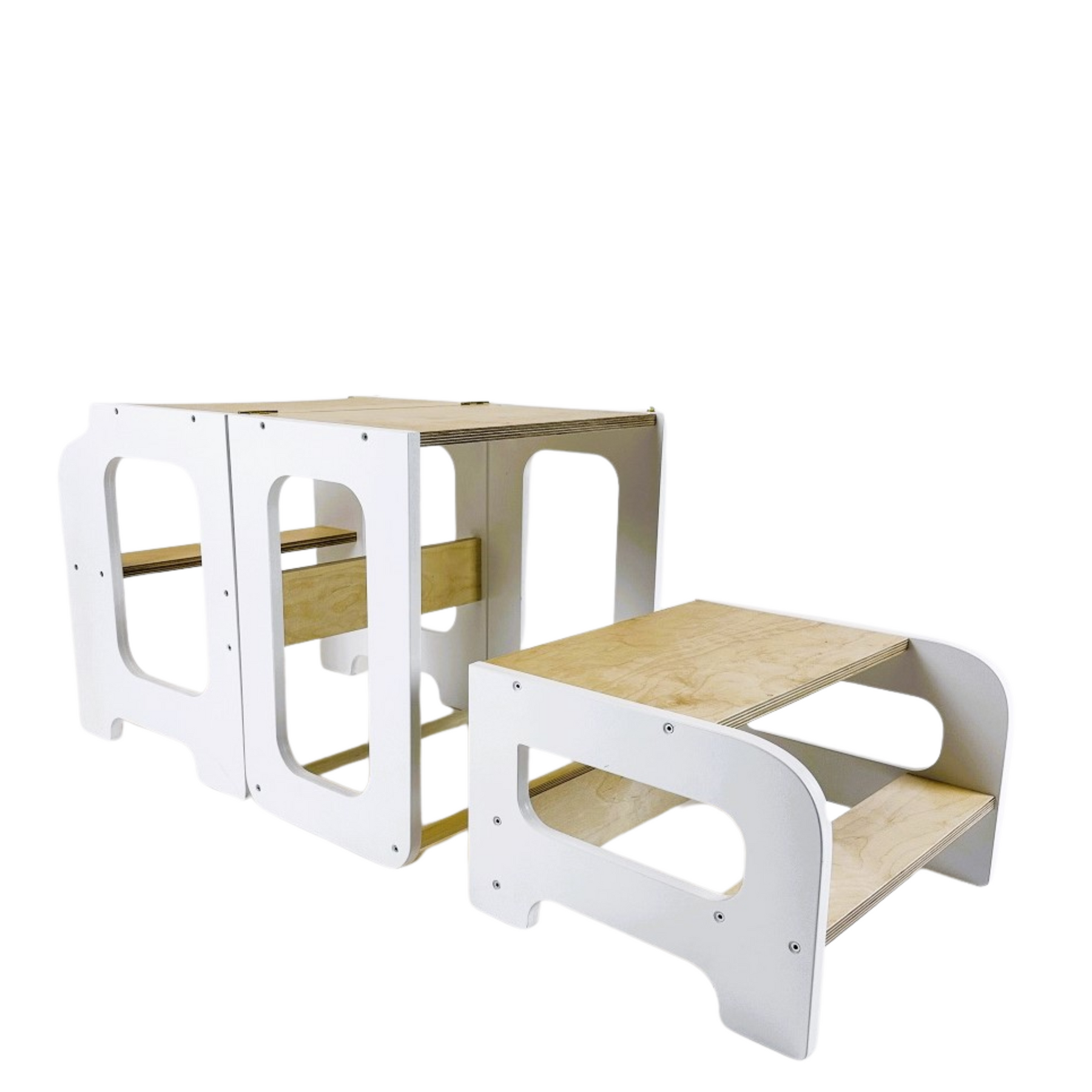 Denne lille træ-skammel er meget mere end bare en siddeplads – den er et omhyggeligt designet komplement til vores 4-i-1 Læringstårn. Uanset om du skal skabe et kreativt legehjørne, opmuntre til selvstændig tandbørstning eller sidde ned sammen til et stille øjeblik, er denne skammel designet til at passe ind i din families daglige rytme.