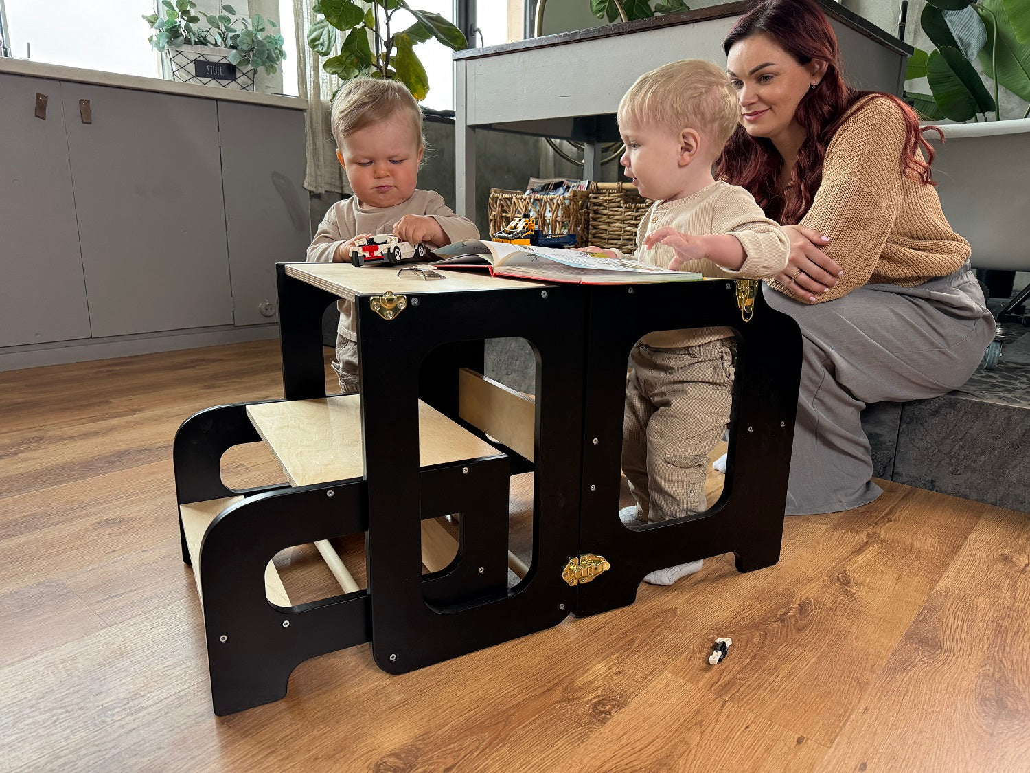 Og det bedste? Den er stærk og stabil nok til også at bære en voksen. Du kan bruge den til at sidde ved siden af dit barn, eller som et lille trin, når du skal nå noget på en høj hylde – ingen vaklen, ingen bekymringer.