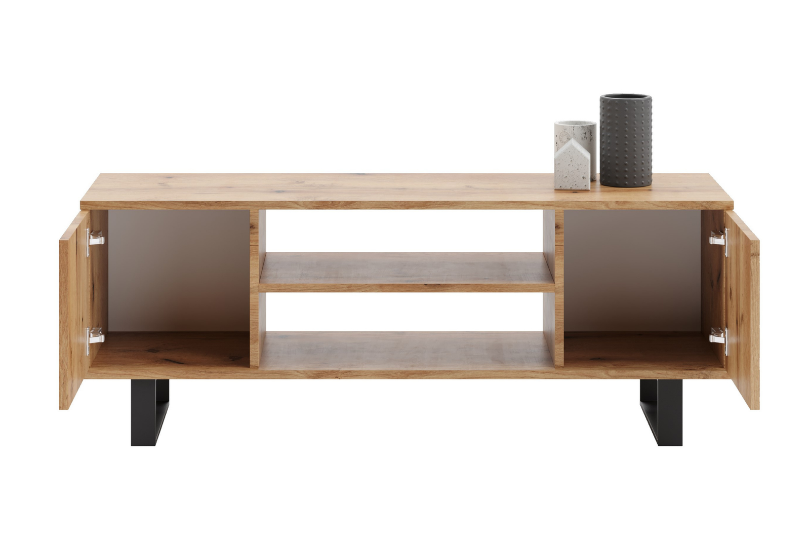 FOCUS 135 RTV-skabet er den ideelle løsning for alle, der leder efter et funktionelt og stilfuldt møbel til deres stue. Det kombinerer moderne design, høj kvalitet i håndværket og praktiske opbevaringsløsninger og imponerer desuden med fronter med et dekorativt sildebensmønster, der giver det en unik karakter.