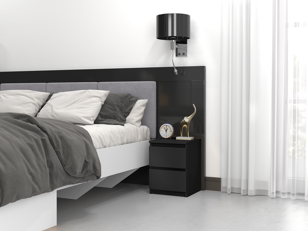 Et natbord er en uundværlig del af ethvert soveværelse. Briller, din yndlingsbog eller mobiltelefonen skal altid være inden for rækkevidde – og MALWA M2 er den perfekte løsning. Den elegante sorte finish tilfører rummet et eksklusivt og moderne udtryk, der passer perfekt til både minimalistiske og mere markante indretninger.