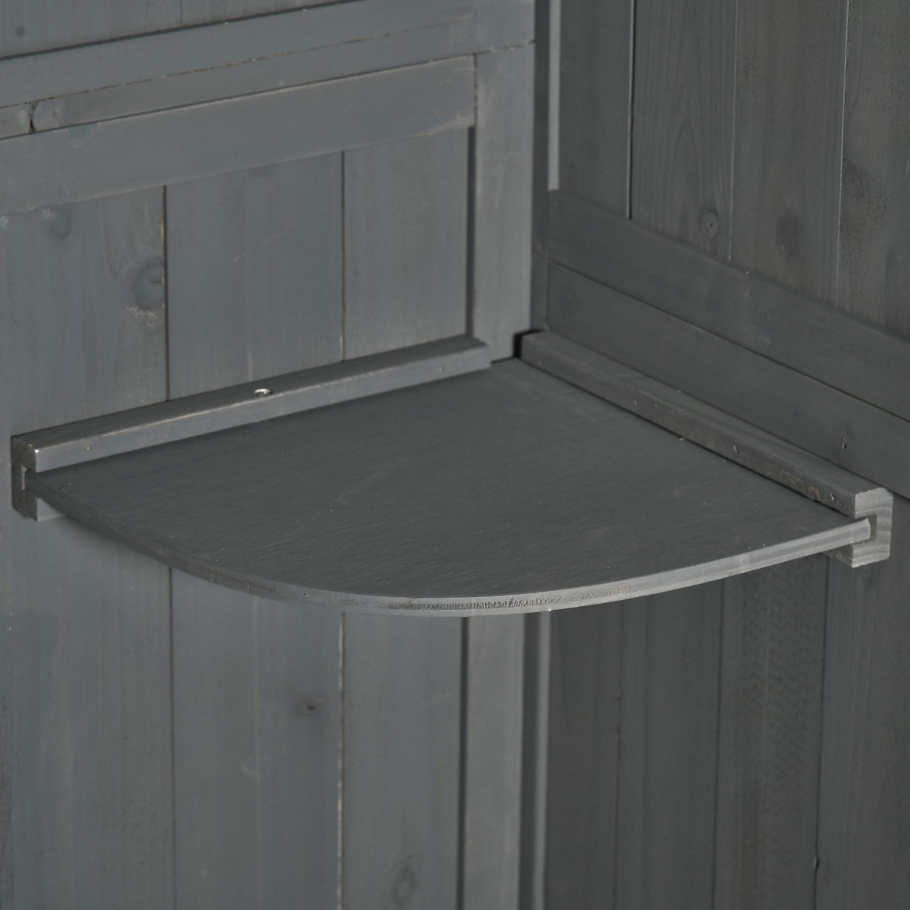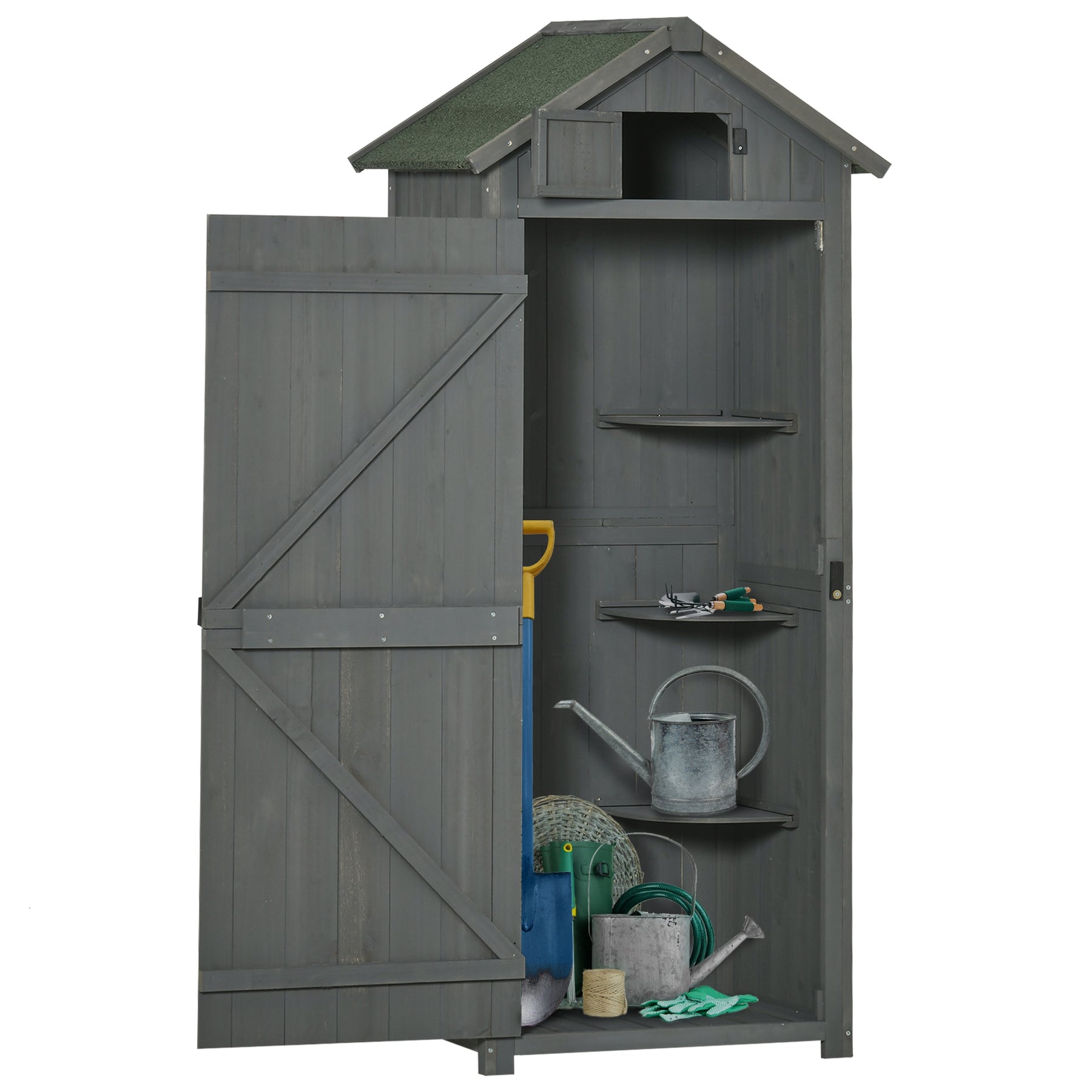 Træskur, vejrbestandigt redskabsskur 77x54,2x179cm, redskabsskur med dør, gavltag, redskabsskab med hylder, redskabsskab haveskur til haven, terrasse, grå+grøn