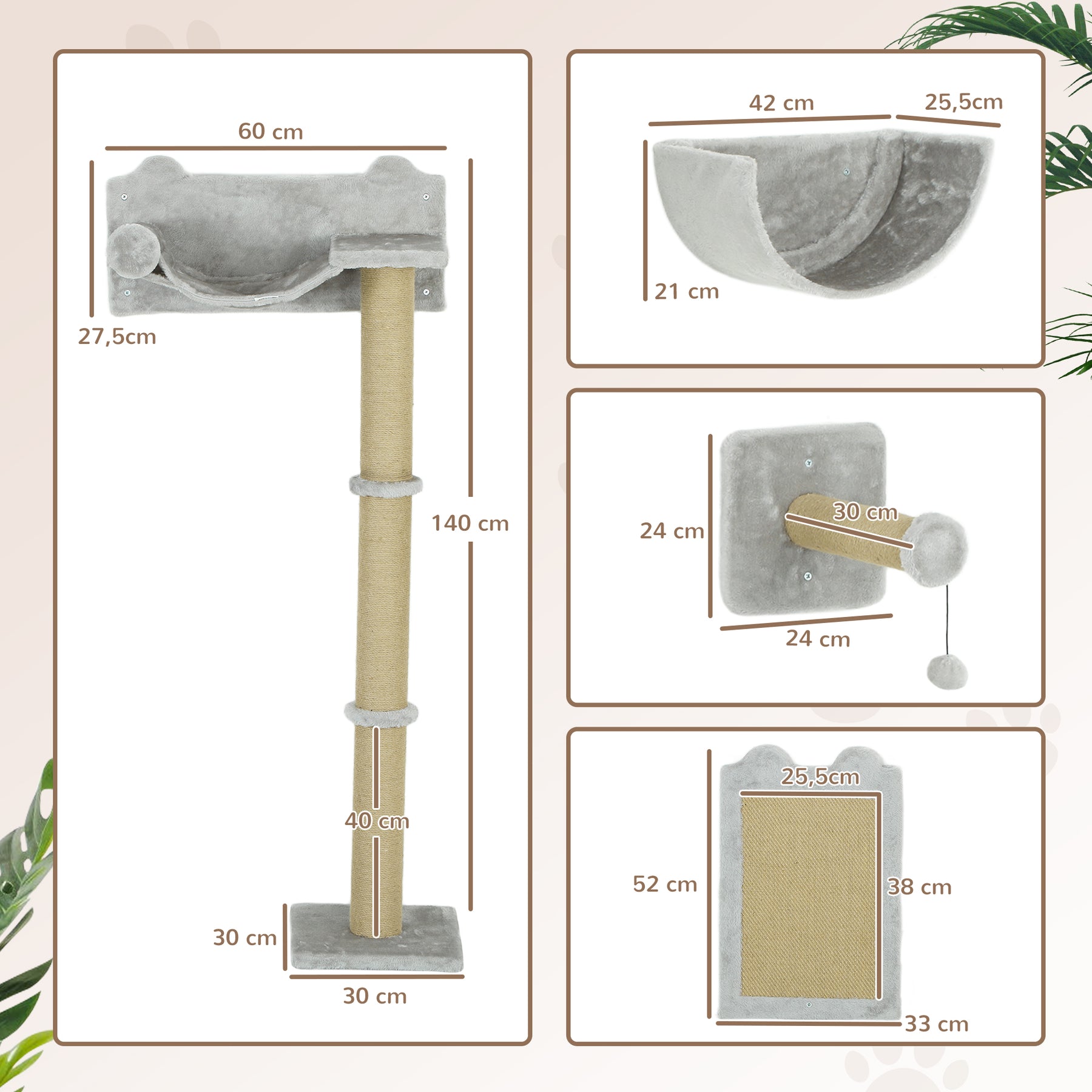 Forvandl dit hjem til et katteparadis med dette klatrevægssæt til katte! Det vægmonterede kradsetræssæt med 5 dele inkluderer to kradsetræer og en hyggelig halvcirkelformet seng, perfekt til leg og afslapning. Ideelt til husstande med en eller to katte, der ønsker at beskytte møblerne mod ridser.