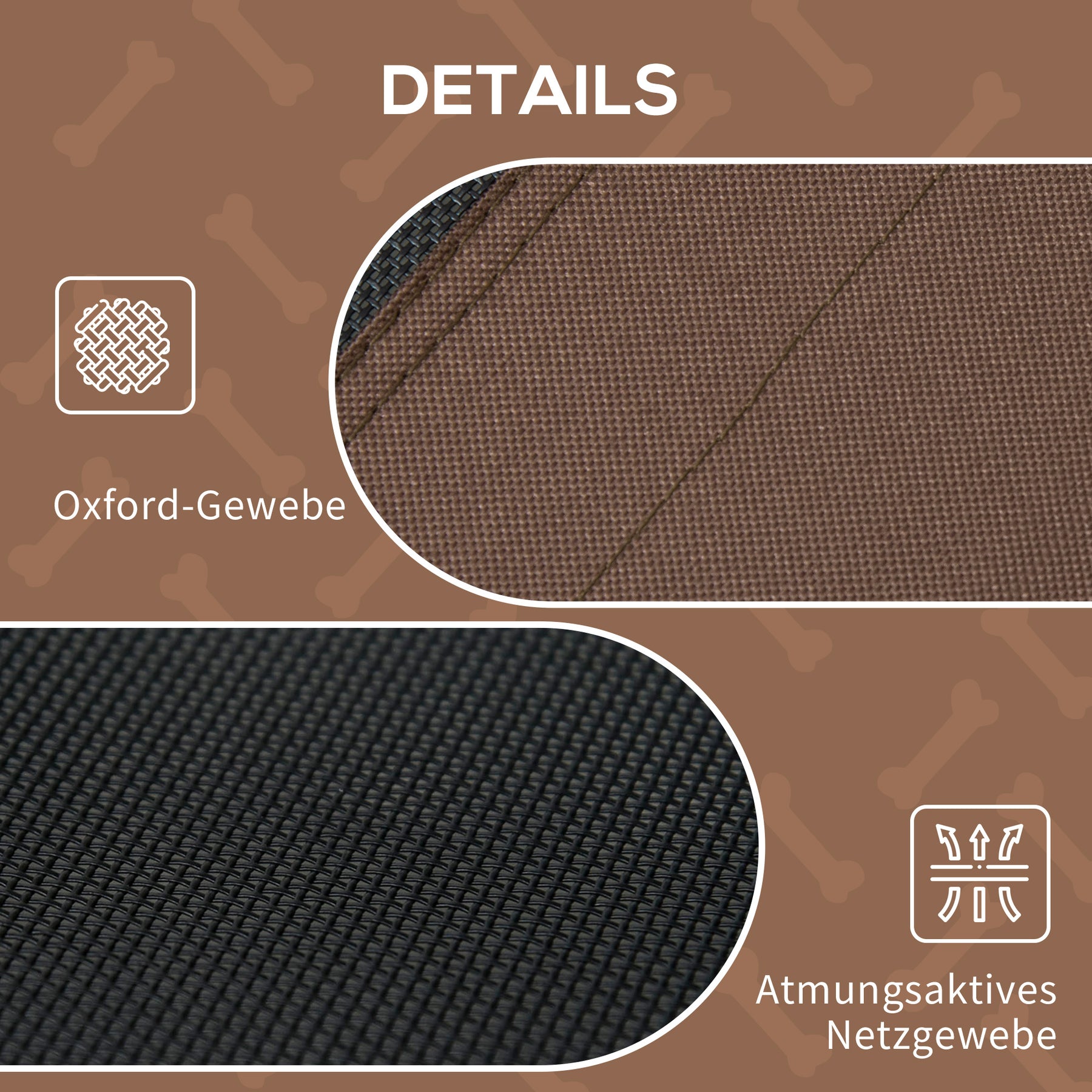 Giv dit kæledyr den ultimative afslapning med en stilfuld hundeseng! Den hævede hundeseng understøttes af fire pulverlakerede metalrør, der er indpakket i åndbart net. Overdækningen giver dit kæledyr behagelig skygge, selv om sommeren, og kan nemt justeres.