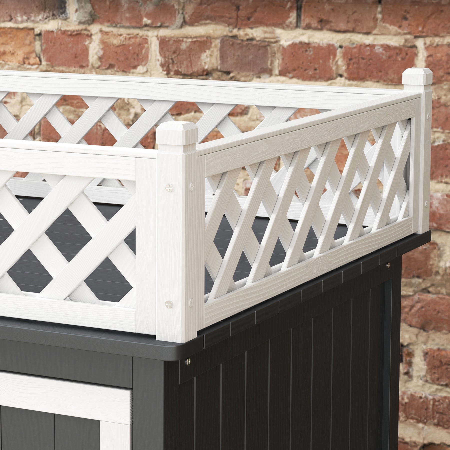 Oplev den charmerende kattehule: et hyggeligt, toetagers sted, hvor din kat kan slappe af ovenpå på balkonen eller trække sig tilbage til det beskyttede område nedenunder. Dette lille dyrehus har trapper for nem adgang og et hævet design for ekstra komfort. Det alsidige udendørs kattehus fungerer også som en diskret plads til kattebakken, er lavet af naturligt fyrretræ og er velegnet til både indendørs og udendørs brug.