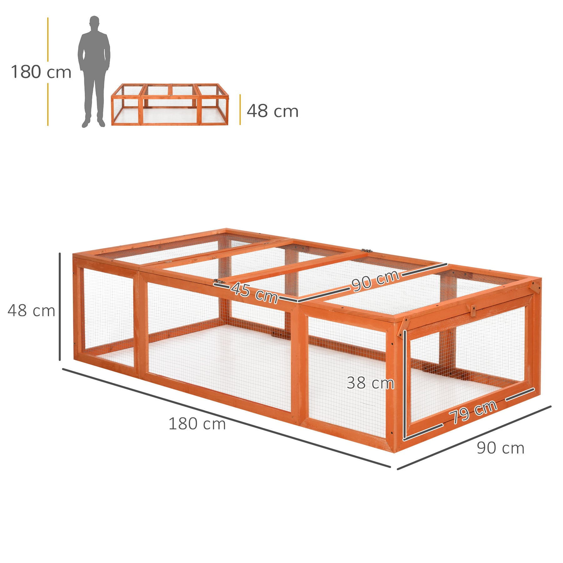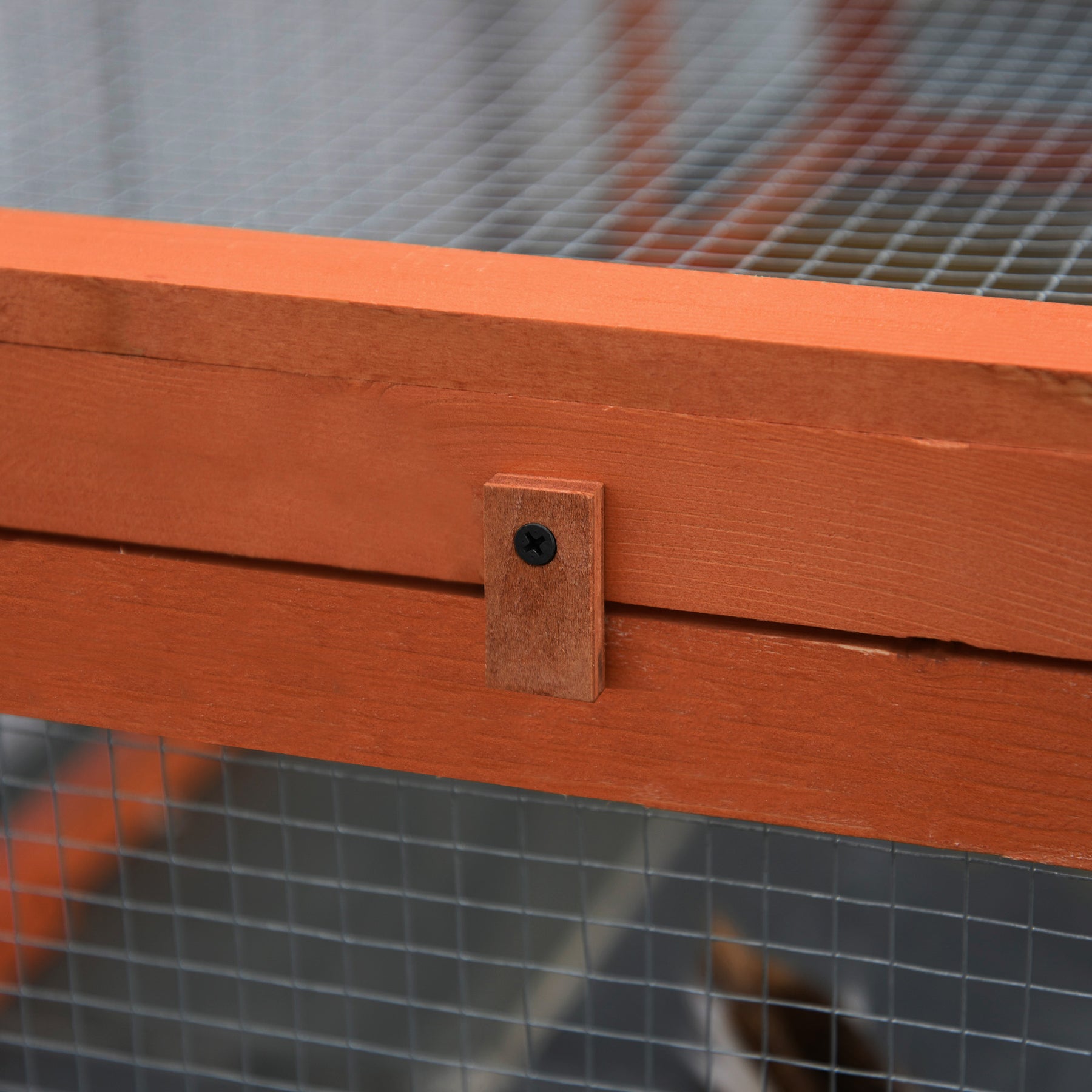 Dette store, vintersikre udendørs kaninbur giver dine små dyr mulighed for at lege, spise og sove i frisk luft. Det er lavet af forseglet, robust og holdbart fyrretræ og trådnet, hvilket sikrer et sikkert og komfortabelt miljø. Taget og et sidepanel kan nemt åbnes for hurtig fodring og vedligeholdelse.