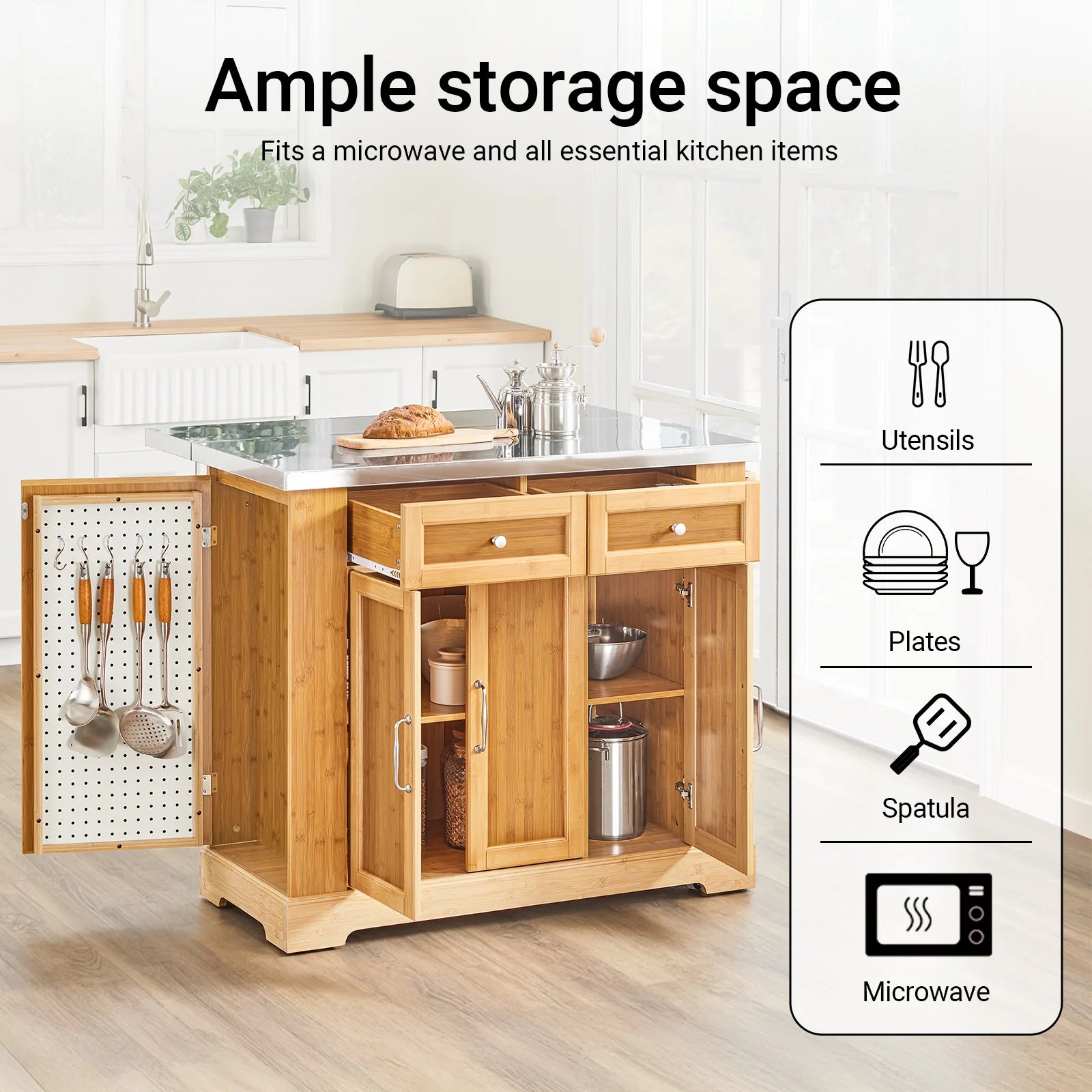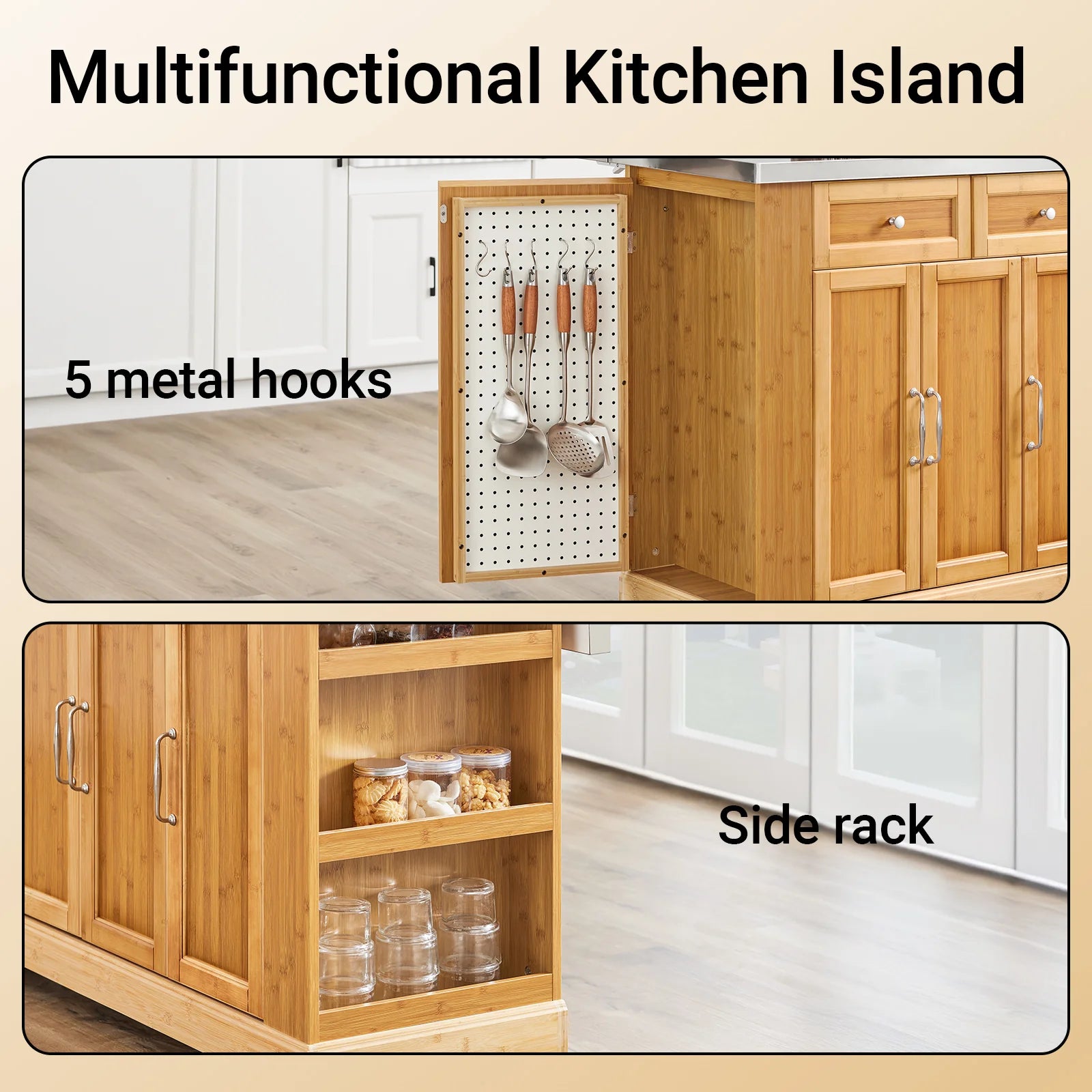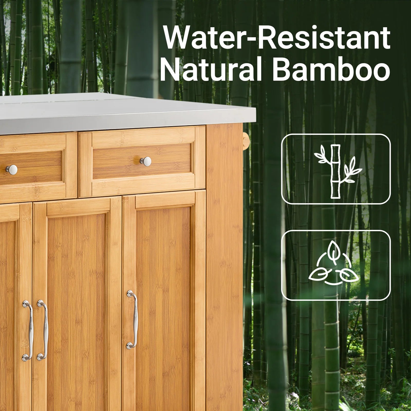 Denne elegante køkkenø er fremstillet af førsteklasses karboniseret bambus, holdbar PB (E1), MDF (E1) og rustfrit stål, hvilket sikrer en imponerende bæreevne på op til 103 kg!