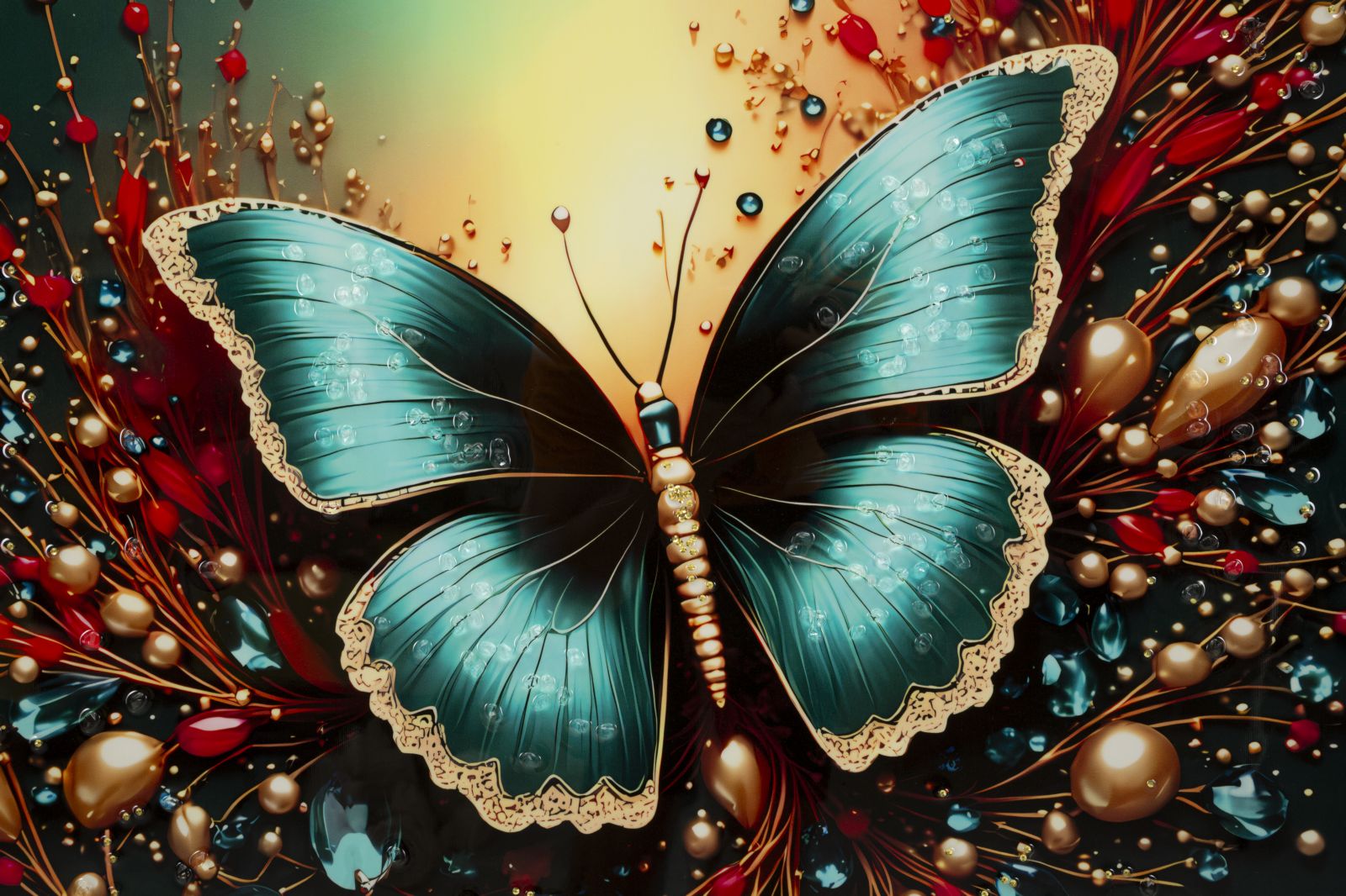 Et motiv med sommerfugleflugt i levende farver og lyse nuancer. En dekorativ vægudsmykning, der tilfører positiv energi og delikat skønhed.