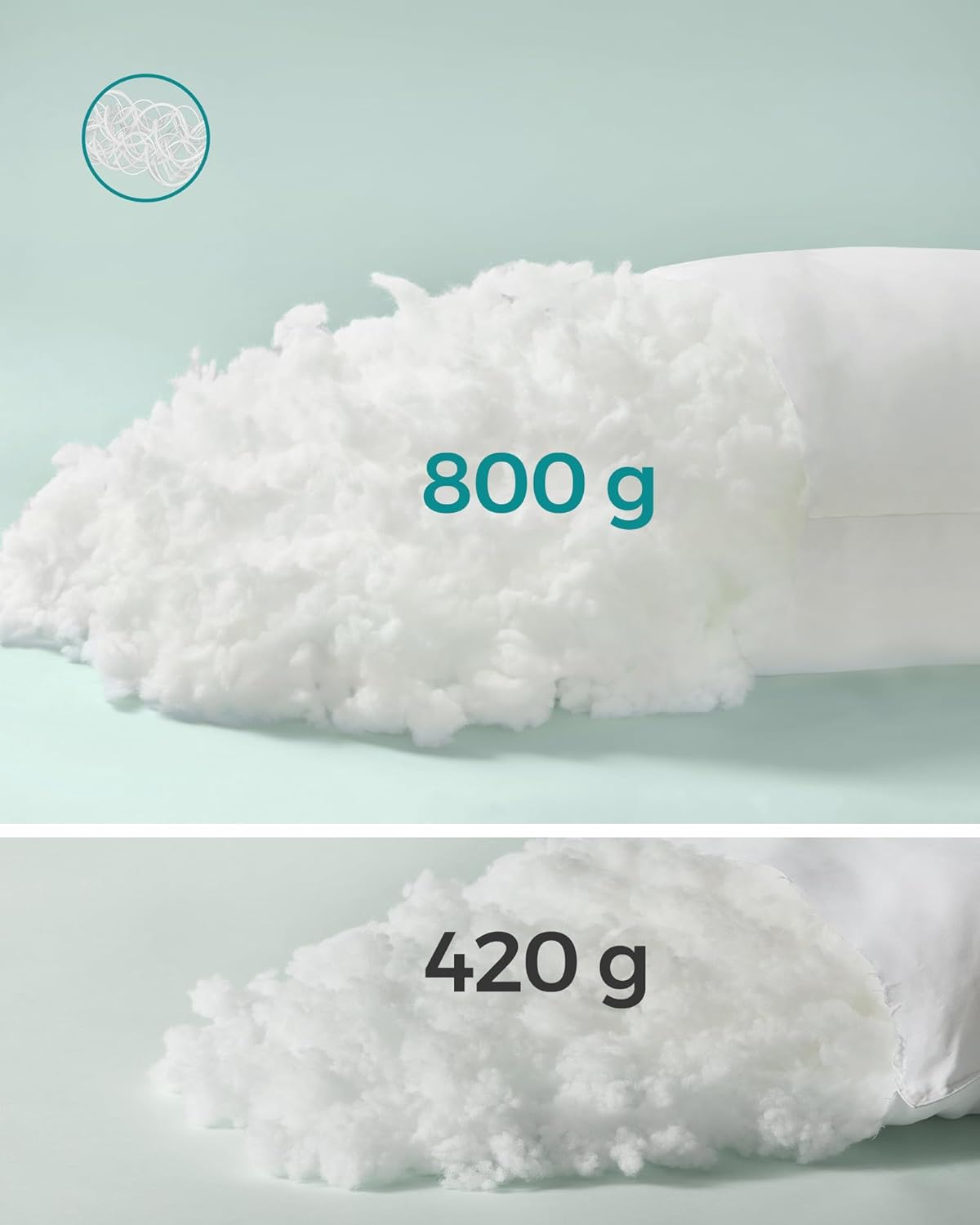Denne pude er fyldt med en balance af 65% bløde 3D-polyesterfibre og 35% støttende 7D-polyesterfibre med en total fyldvægt på 800 g. Kombinationen giver behagelig støtte og sikrer en god nattesøvn.