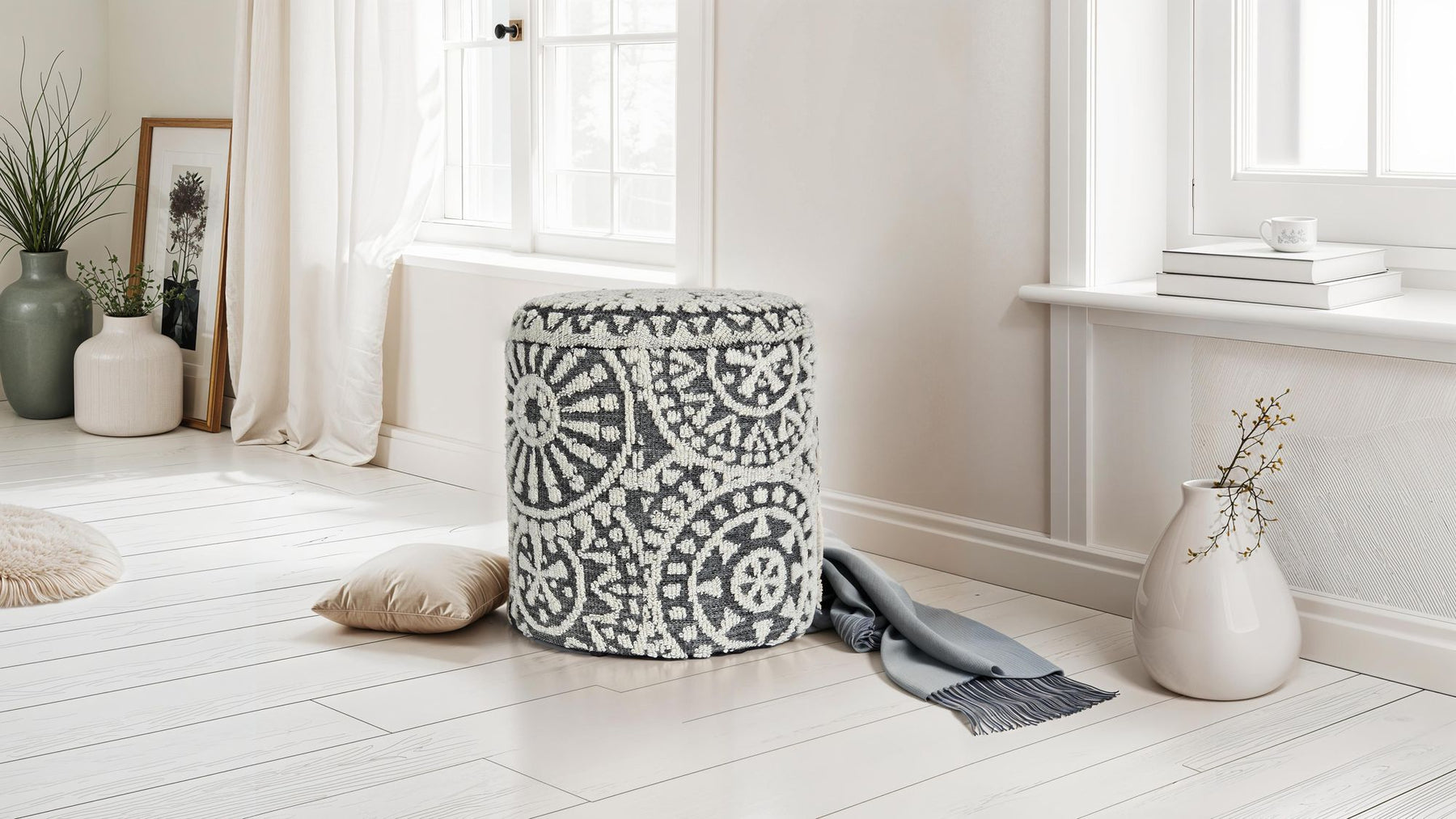 • Cirkulær struktur omkring puffen som en dekorativ detalje