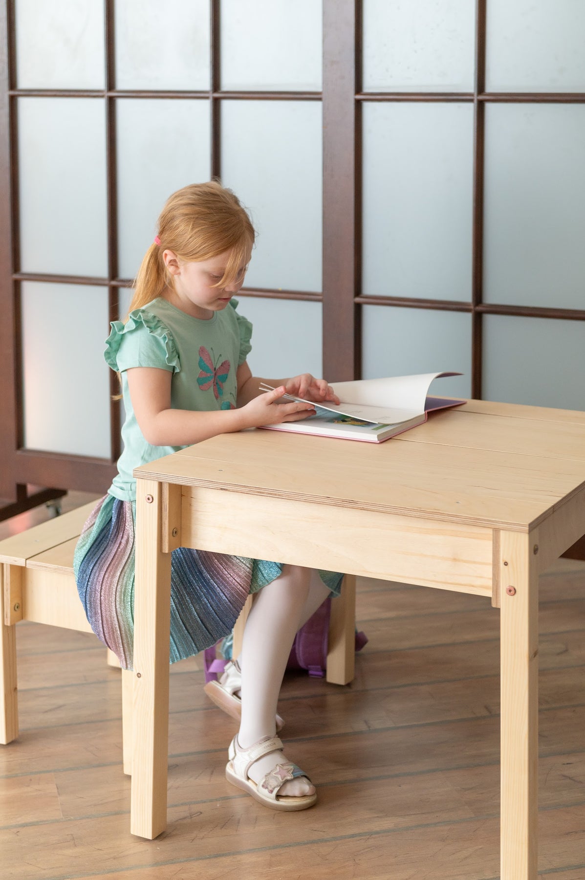 Smart Bord- og Stolsæt er konstrueret for at være helt ufarligt for børn. Fremstillet af 100% birkekrydsfiner.