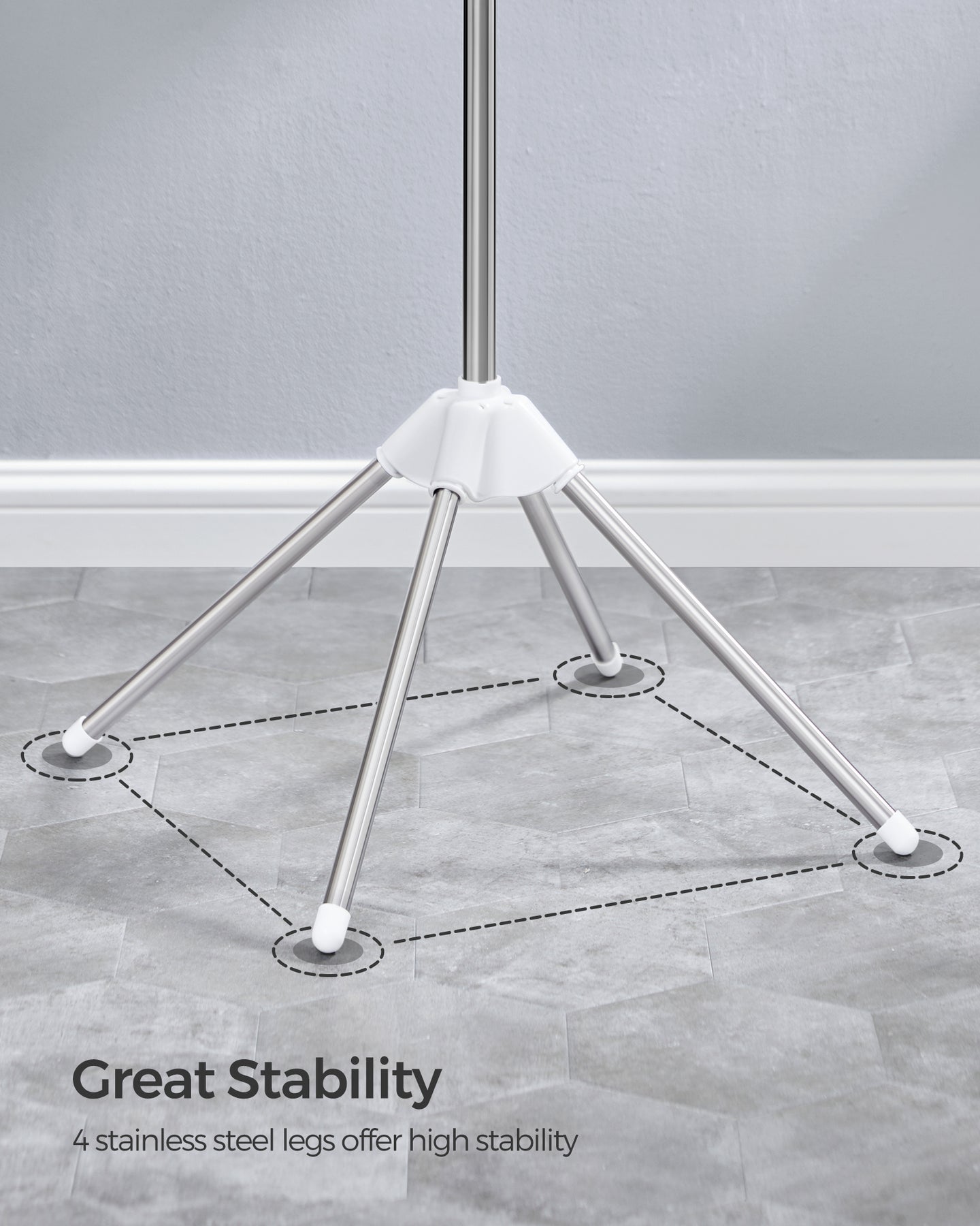 Med tre roterende arme er det en leg at hænge tøj op. Armene kan dreje 360°, så du nemt kan nå alt tøjet uden at flytte stativet. Hver arm har plads til bøjler, og stativet kan i alt holde op til 27 stykker tøj med en maksimal bæreevne på 15 kg. Det er også perfekt til tasker, sko og andet tilbehør.