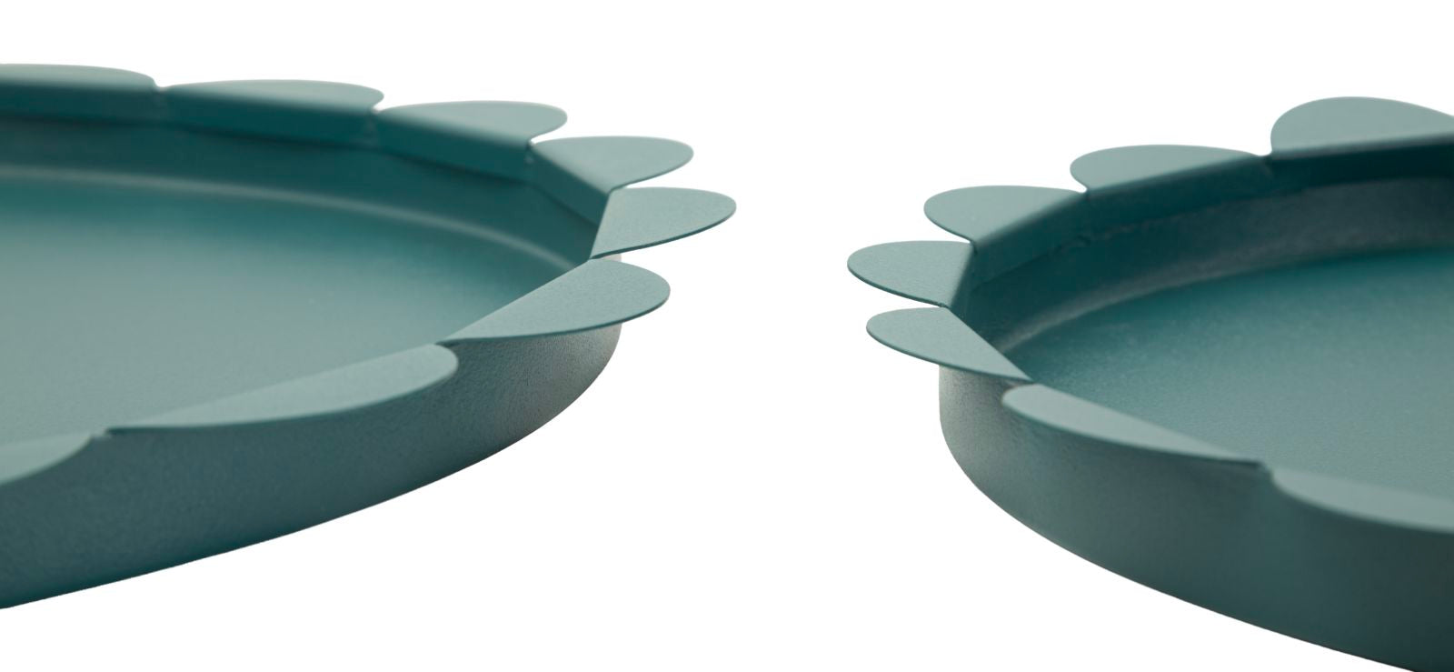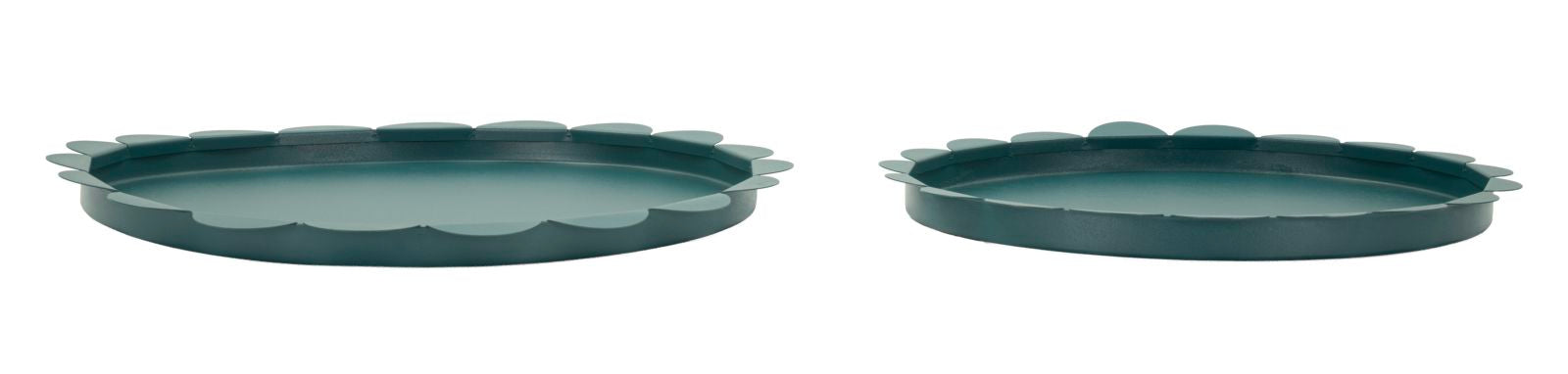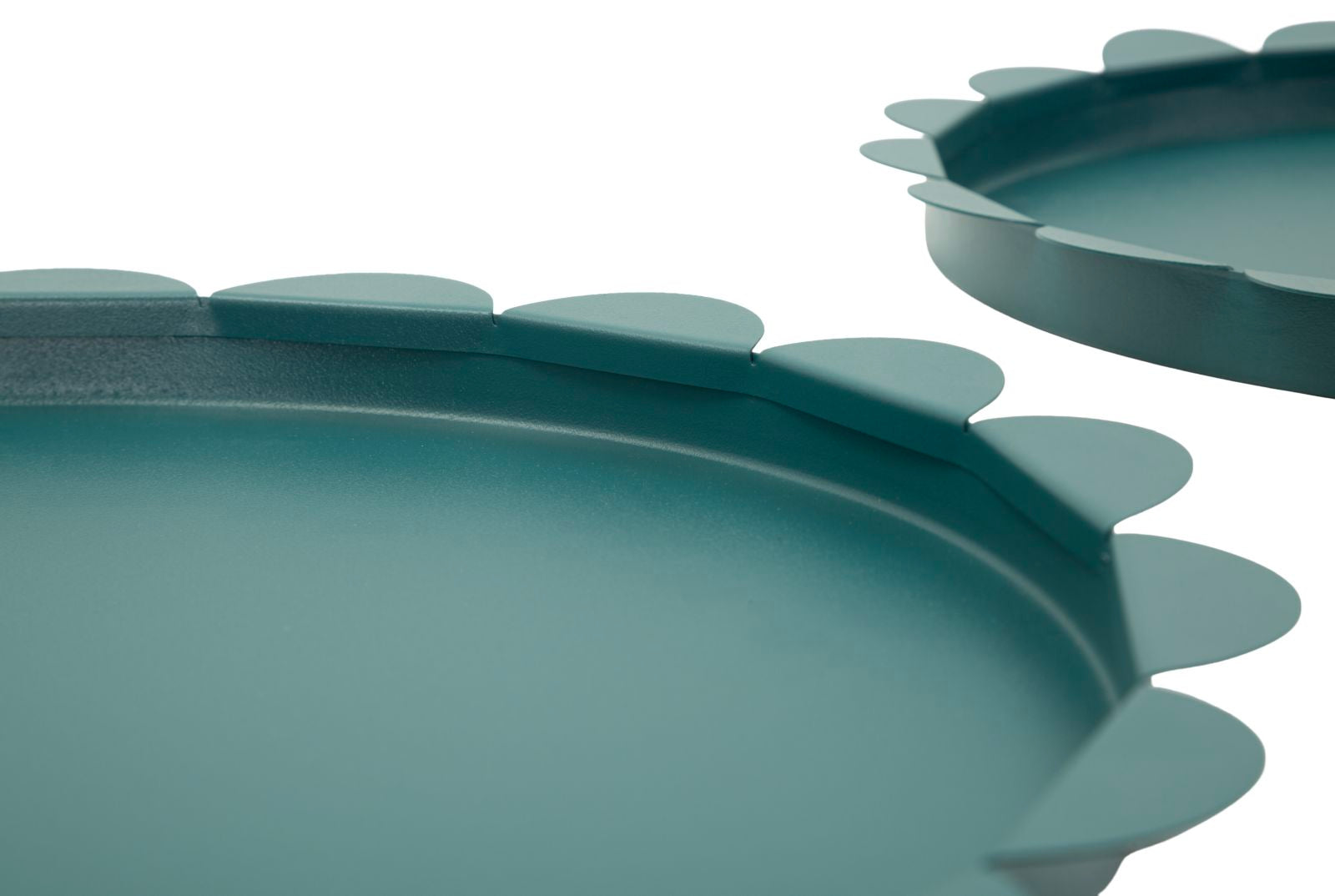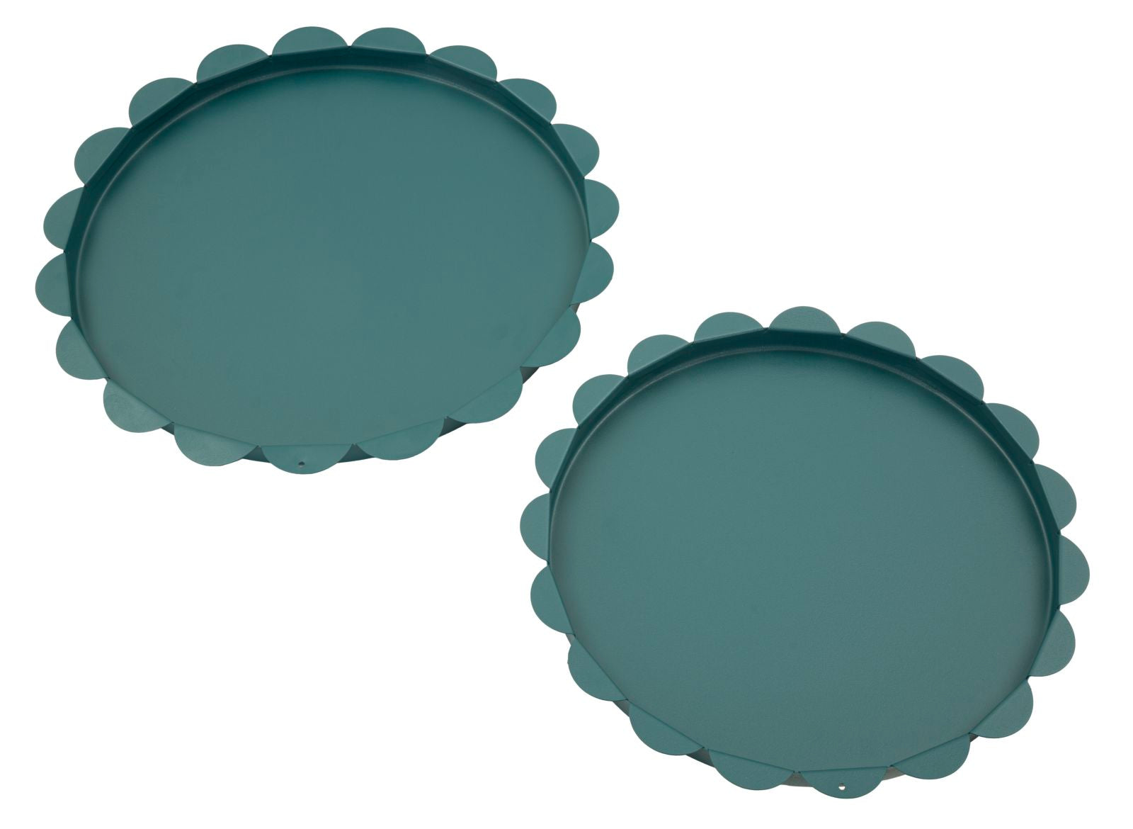 Saturn Rundt Serveringsfad Teal sæt med 2 stk. er en dekorativ detalje, der tilfører hjemmet personlighed og et elegant udtryk.