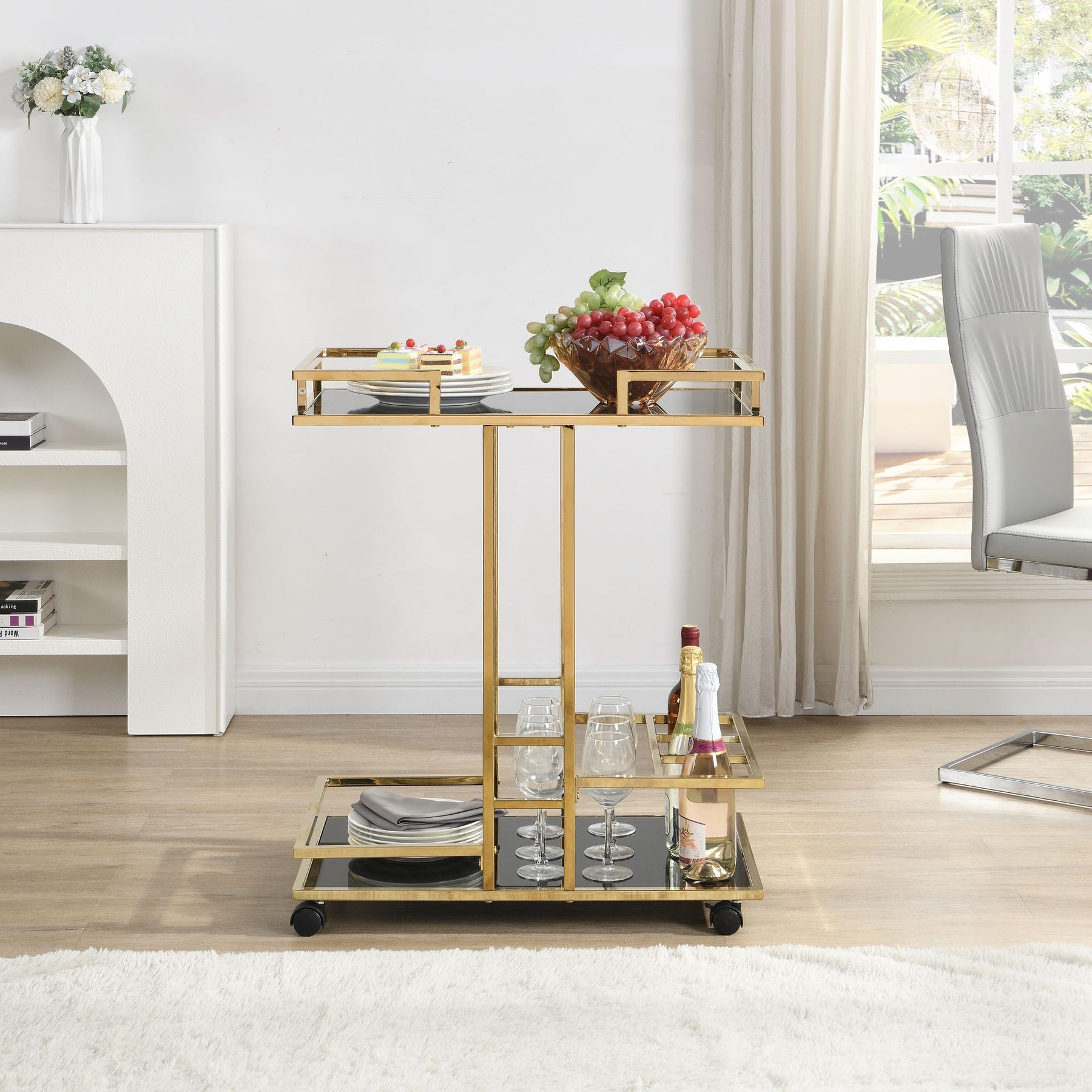 - Moderne serveringsvogn i et elegant sort og guld look