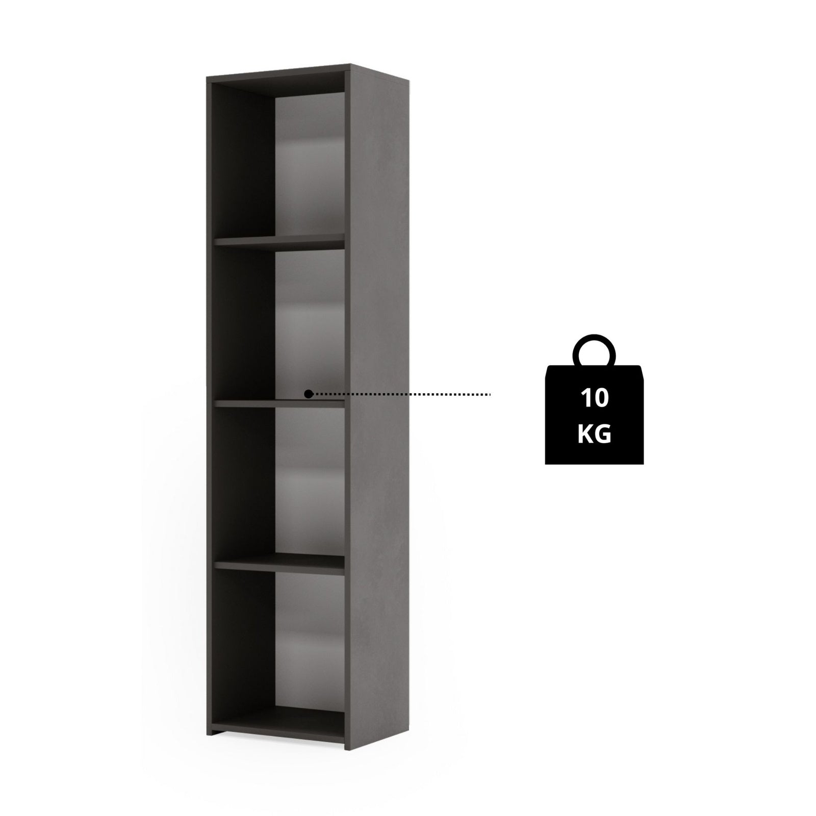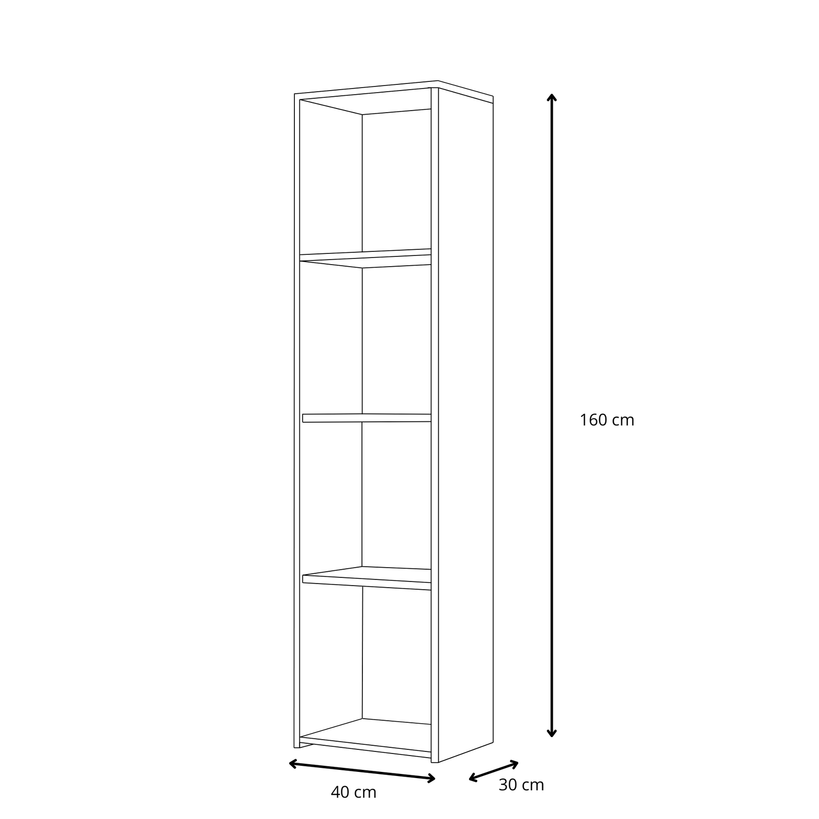 LONI-reolen er en alsidig løsning til ethvert rum - den fungerer lige så godt i stuen, soveværelset, børneværelset og kontoret. Takket være den gennemtænkte afstand mellem hylderne giver den mulighed for praktisk placering af bøger, dokumenter, dekorationer eller en samling af hverdagsgenstande. Den solide konstruktion af lamineret plade af høj kvalitet og en æstetisk finish med PVC-kanter garanterer holdbarhed og modstandsdygtighed over for daglig brug. LONI-reolen er ikke kun et praktisk møbel, men også et designelement, der vil understrege karakteren af ethvert interiør og skabe et rum, der passer perfekt til dine behov.