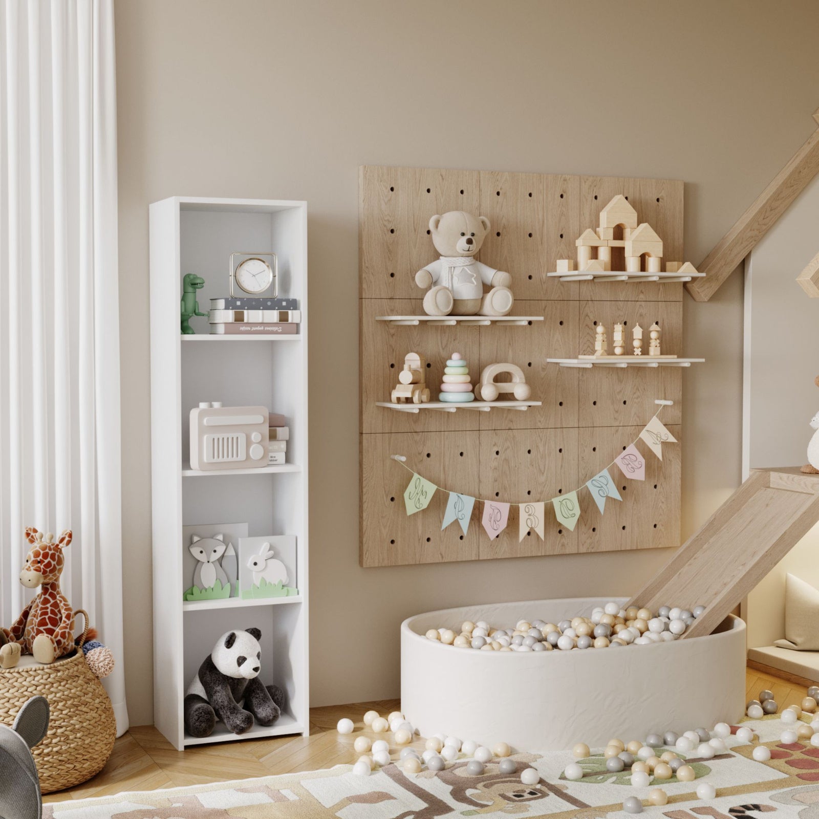 Den klassiske LONI-reol er den perfekte kombination af minimalistisk stil og praktisk anvendelighed. Dens enkle form og neutrale farver gør den til et perfekt match til en række forskellige indretningsarrangementer, uanset stil. Det er et møbel, der ikke kun smukt udstiller bøger, men også hjælper med at organisere rummet og skaber harmoni og orden.