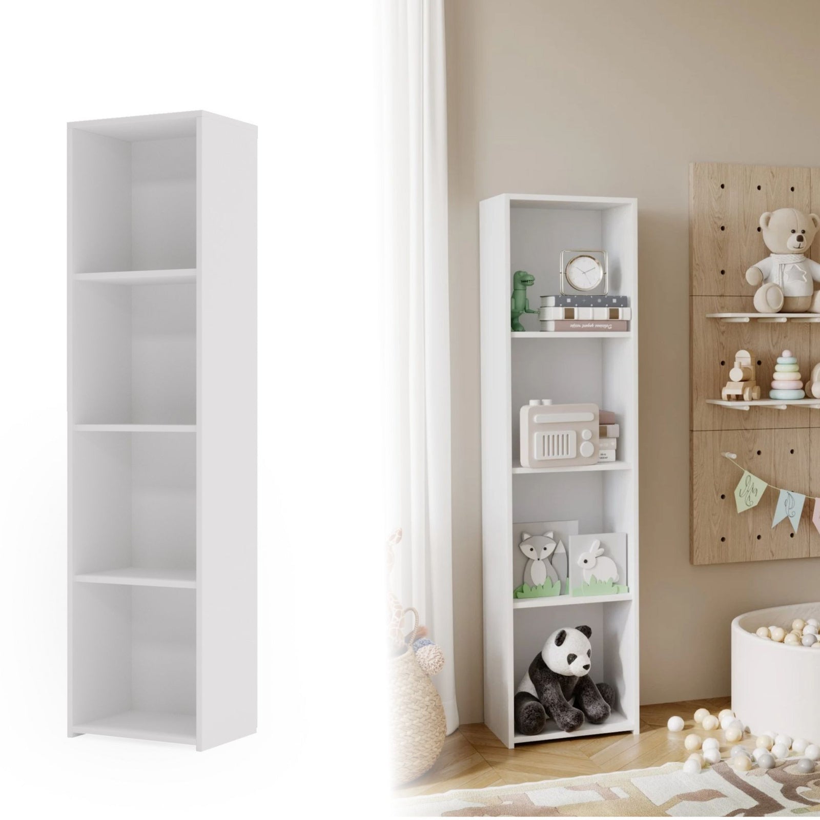 LONI-reolen er en alsidig løsning til ethvert rum - den vil fungere lige så godt i stuen, soveværelset, børneværelset og kontoret. Takket være den gennemtænkte afstand mellem hylderne giver den mulighed for praktisk placering af bøger, dokumenter, dekorationer eller en samling af hverdagsgenstande. Den solide konstruktion af lamineret plade af høj kvalitet og en æstetisk finish med PVC-kanter garanterer holdbarhed og modstandsdygtighed over for daglig brug. LONI-reolen er ikke kun et praktisk møbel, men også et designelement, der vil understrege karakteren af ethvert interiør og skabe et rum, der passer perfekt til dine behov.