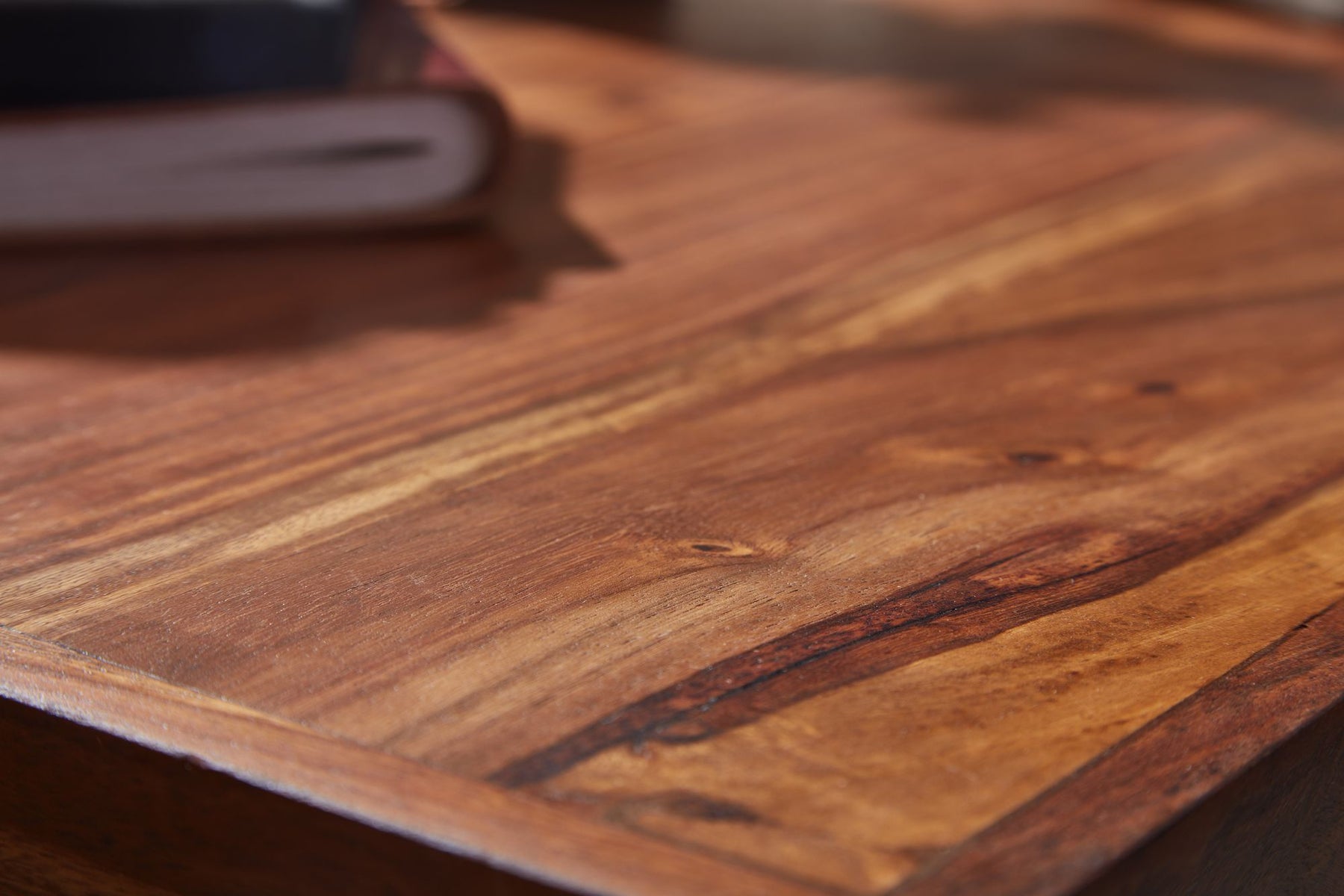 Hvert bord er kærligt behandlet Håndlavet og derfor et helt unikt stykke. Den beskyttende lakfinish på overfladerne giver træbeskyttelse. Skuffen er ideel til penne, linealer og meget mere. Den robuste metalramme sikrer stabilitet. Den maksimale belastningskapacitet er ca. 50 kg.