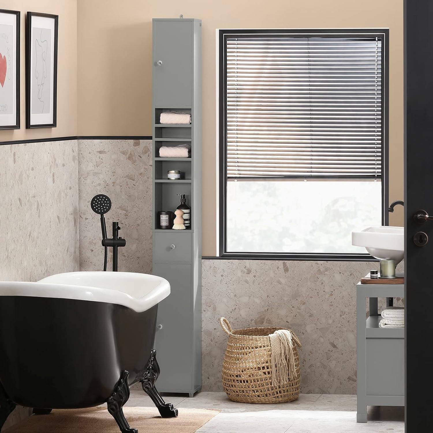 Kæmper du med pladsmangel i dit badeværelse? Dette ultrasmalle og elegante højskab er designet til at udnytte den lodrette plads og samtidig give optimal beskyttelse mod fugt.