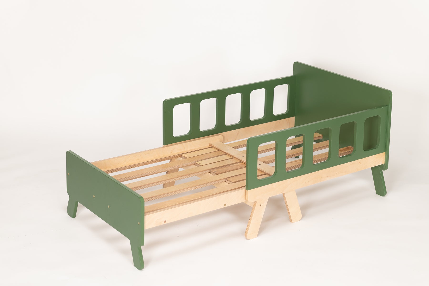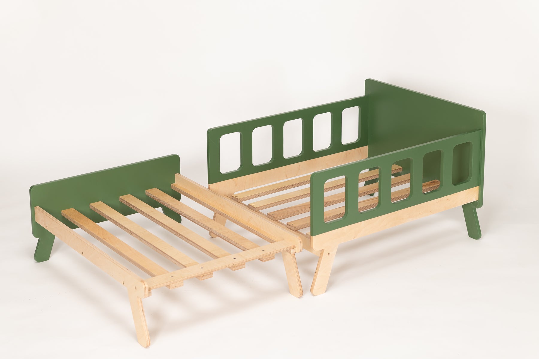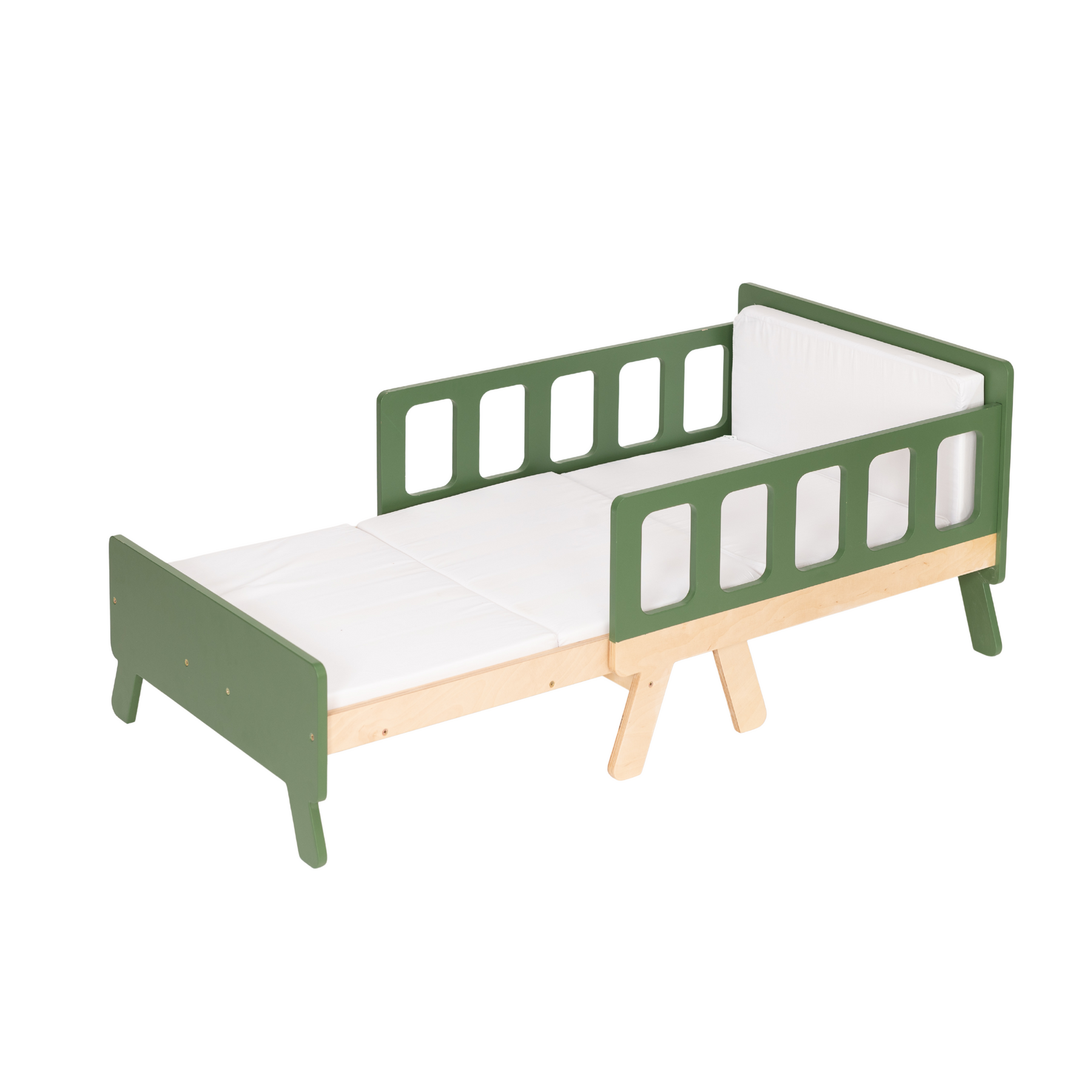 Sengen er smart, fordi den kan bruges til at sove, sidde og lege i. Den vokser med barnet – længden kan forkortes og forlænges, og den kan nemt omdannes til en sofa med ryglæn og armlæn. Og ikke mindst: vi leverer sengen med en madras, som kan tilpasses både sofa og seng, så dit barn føler sig komfortabel hele dagen.