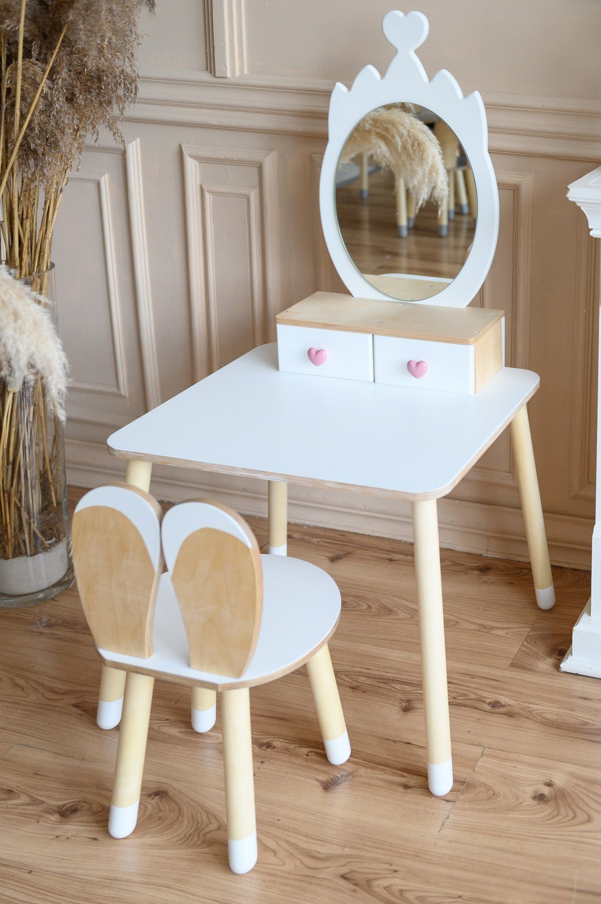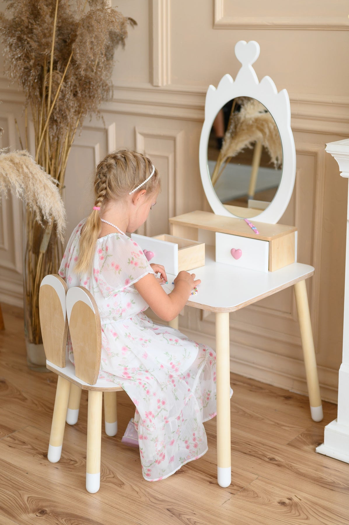 Sminkebord til barn, hvid og naturfarvet