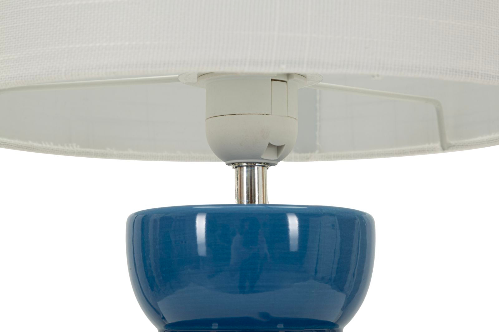 Den hvide lampeskærm skaber en flot kontrast til den dybe blå farve og sikrer samtidig en klar og behagelig belysning. Resultatet er en stilfuld lampe, der både fungerer som dekorativt statement og funktionel lyskilde.