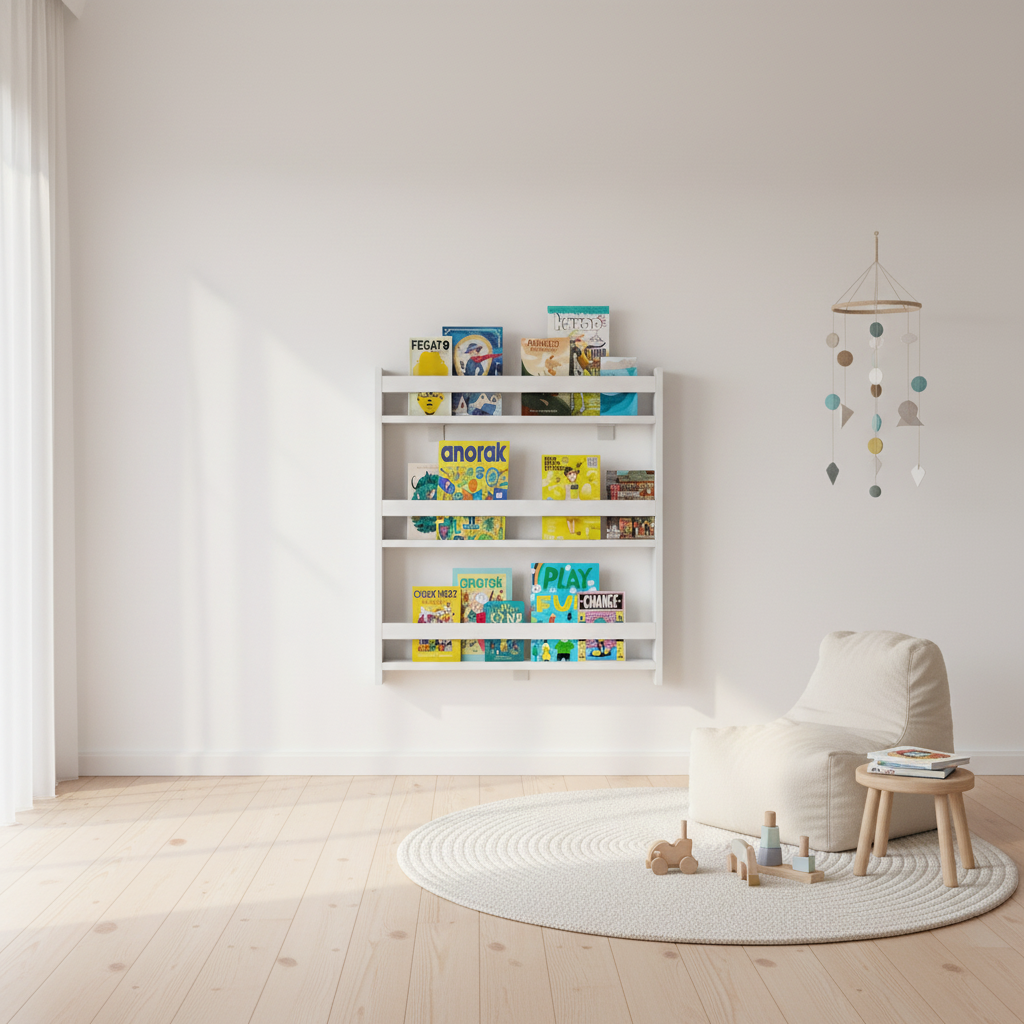 Vægreolen er perfekt til børne- eller babyværelset. Ideel til opbevaring af billedbøger.