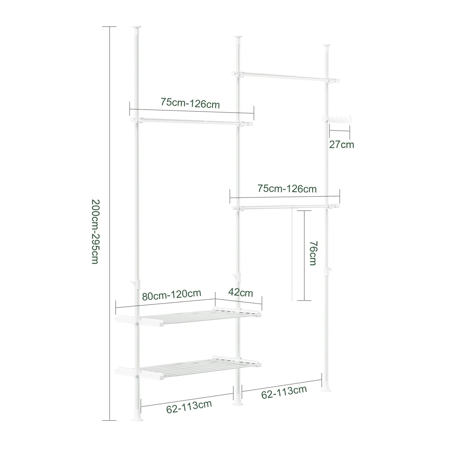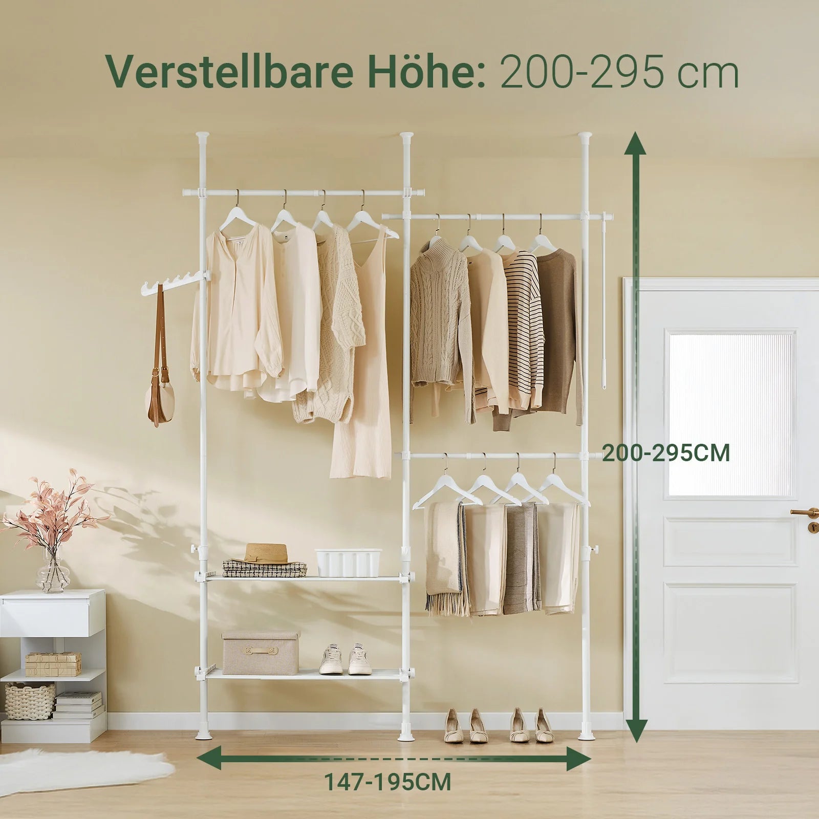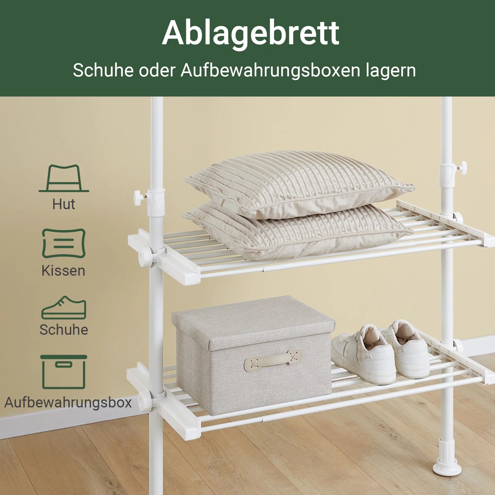 • Alt-i-et opbevaringssystem – Inkluderer 3 justerbare hylder, 3 teleskopstænger til tøj og 3 kurve. Skab din egen personlige garderobe.